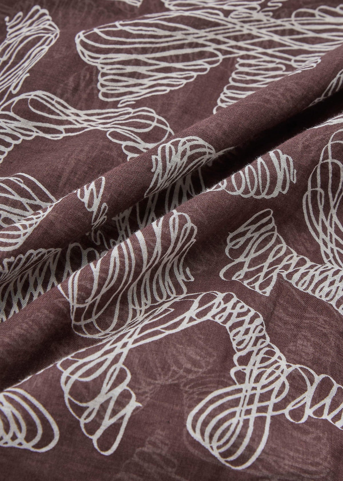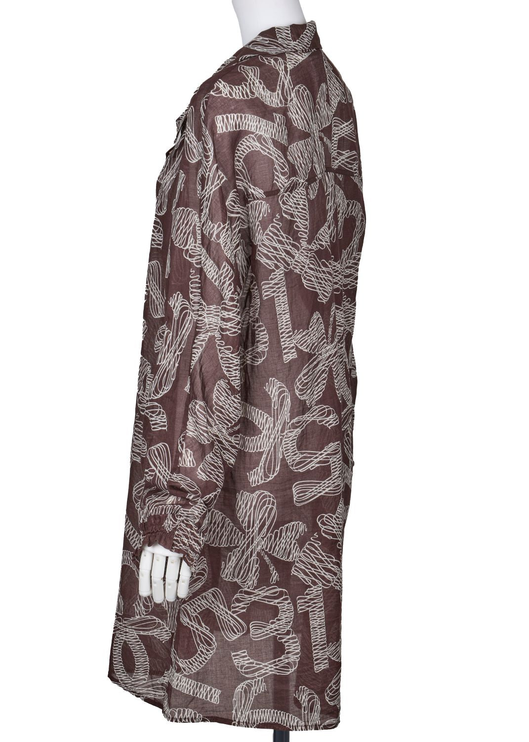Pre-Owned Long Sleeve Blouse, Coco Mark Ribbon, 100% Cotton, Brown, Gold-Tone Hardware, Pre-Owned