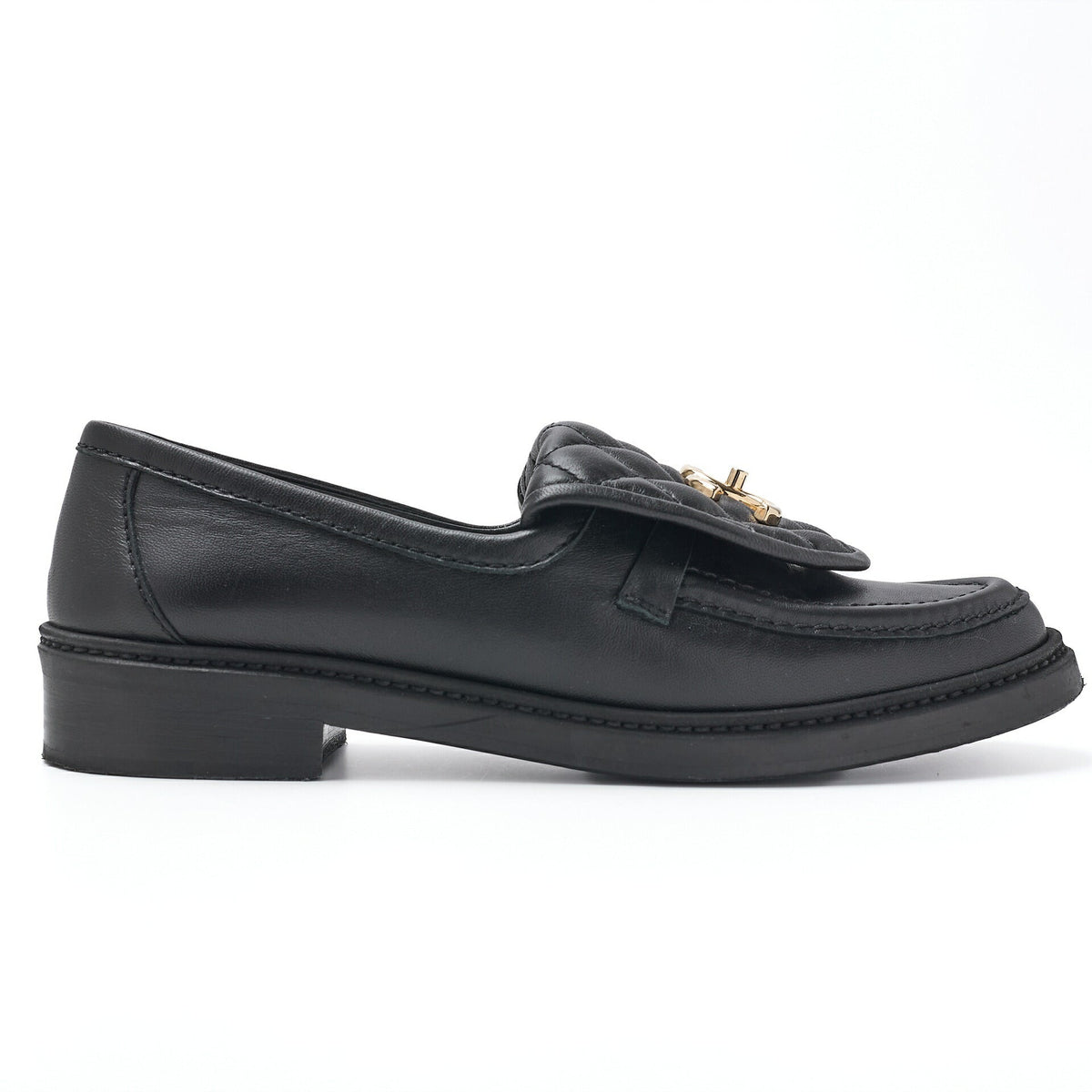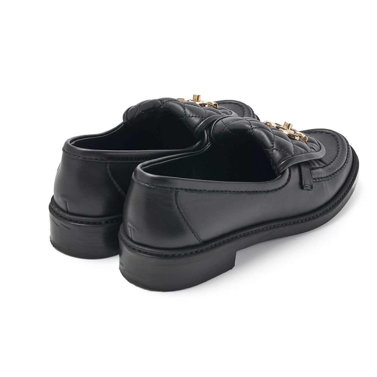 Pre-Owned Loafers Shoes Matelasse Black Gold-Tone Hardware Pre-Owned