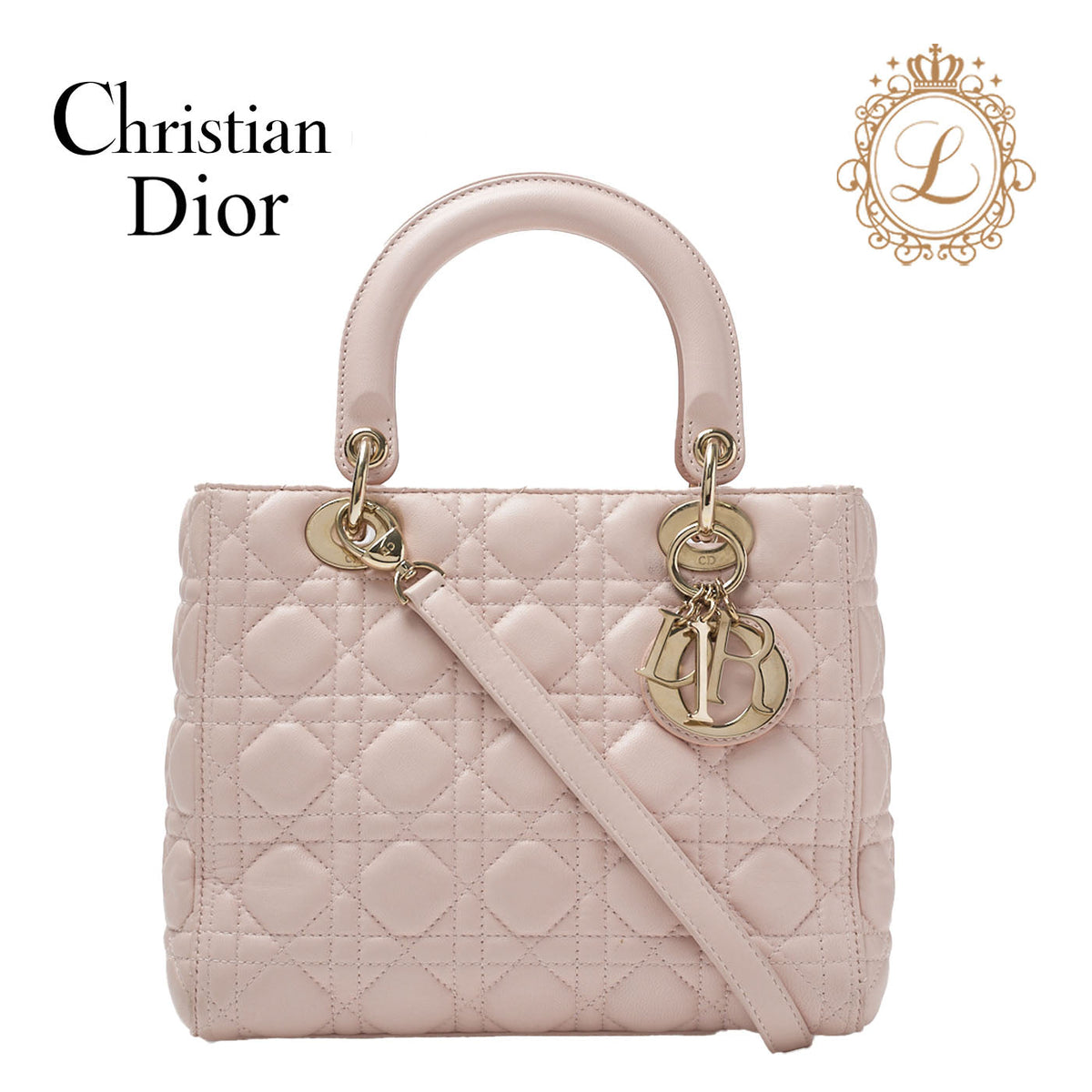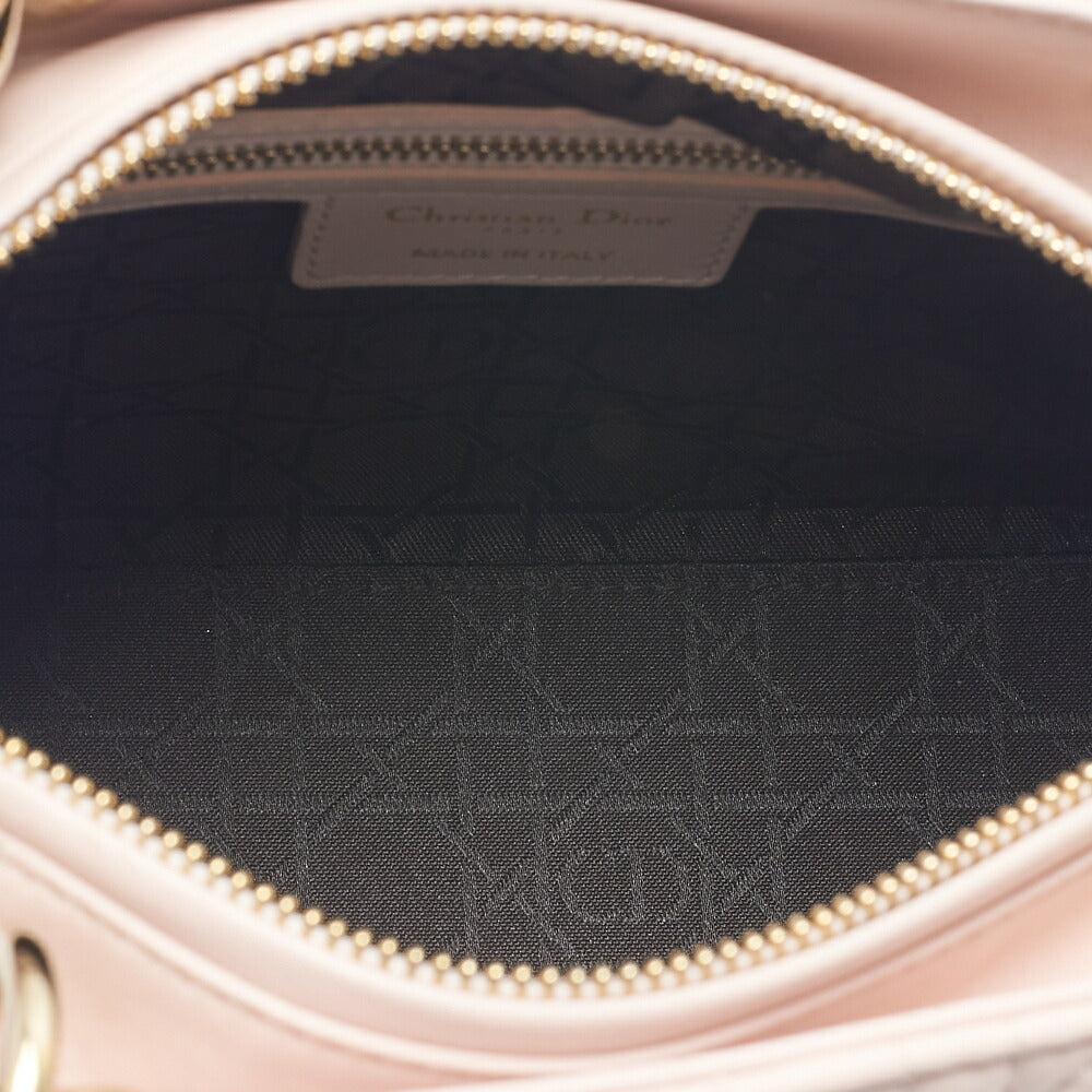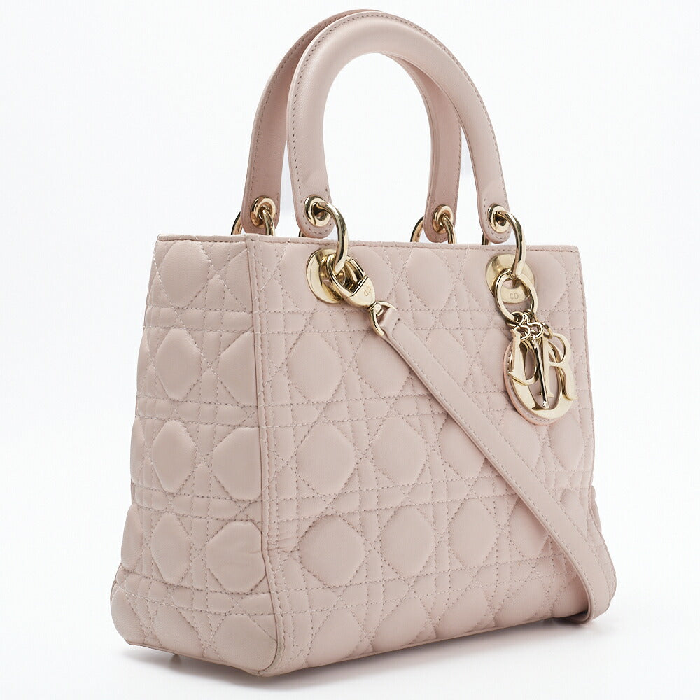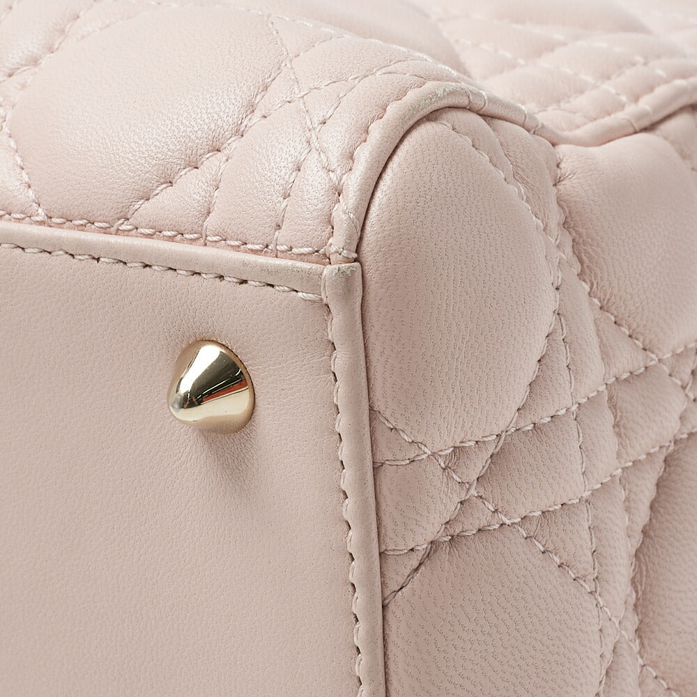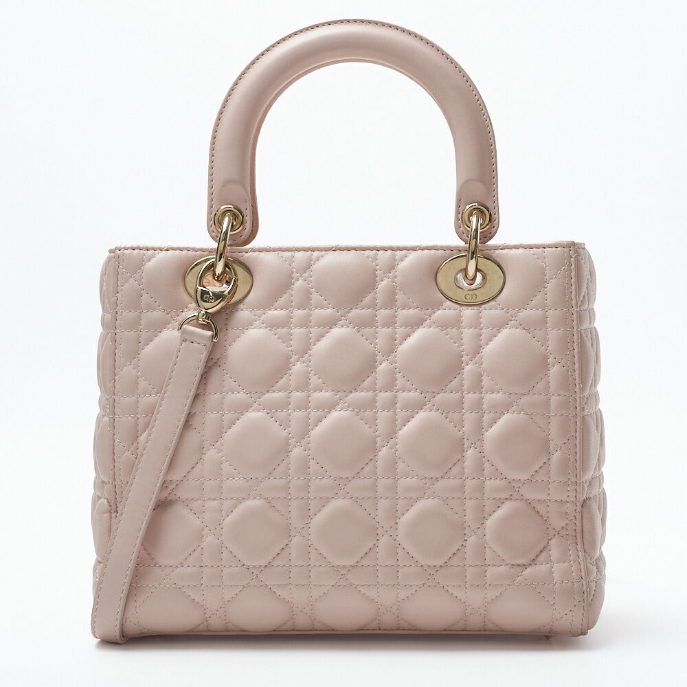 Introducing the exquisite Dior Dior Lady Dior Cannage 2WAY Handbag in luxurious lambskin leather, beautifully presented in a delicate light pink hue with stunning gold fittings. This iconic handbag is not just a fashion accessory; it’s a statement piece that embodies elegance and sophistication.