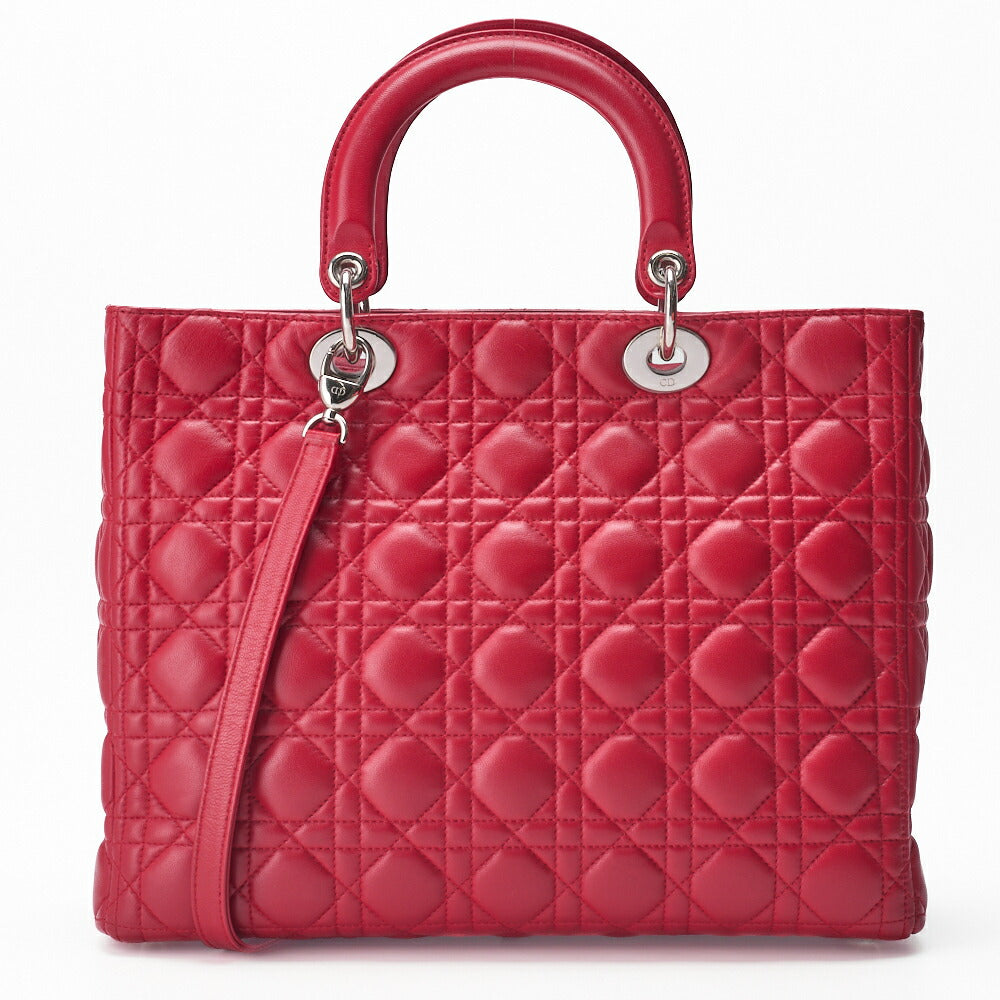 Elevate your style with the Dior Lady Dior Cannage 2WAY Handbag, a stunning accessory that perfectly blends luxury and practicality. Crafted from sumptuous lambskin leather, this exquisite handbag features a vibrant red hue that adds a bold touch to any outfit. Ideal for the modern woman, it offers versatility with its 2WAY design, allowing you to carry it as a shoulder bag or use the top handles for a more classic look.