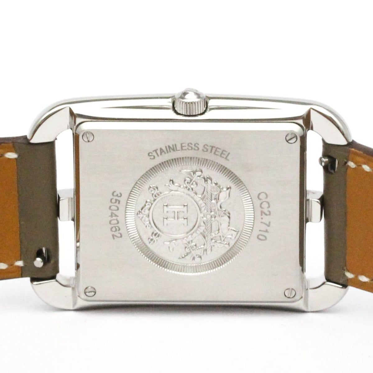 Pre-Owned HERMES Cape Cod Steel Leather Quartz Mens Watch CC2.710 Polished