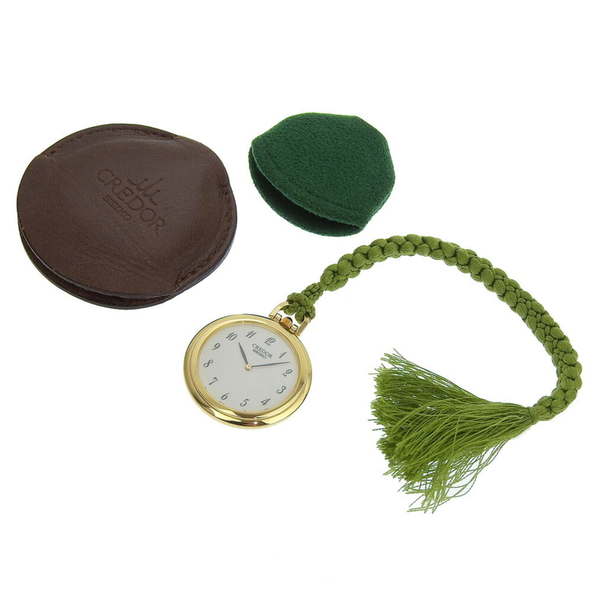 Pre-Owned Like new Seiko Credor 5A74 0670 White dial wristwatch 18KYG Quartz Battery 30mm Men's Women's 2-hand pocket watch