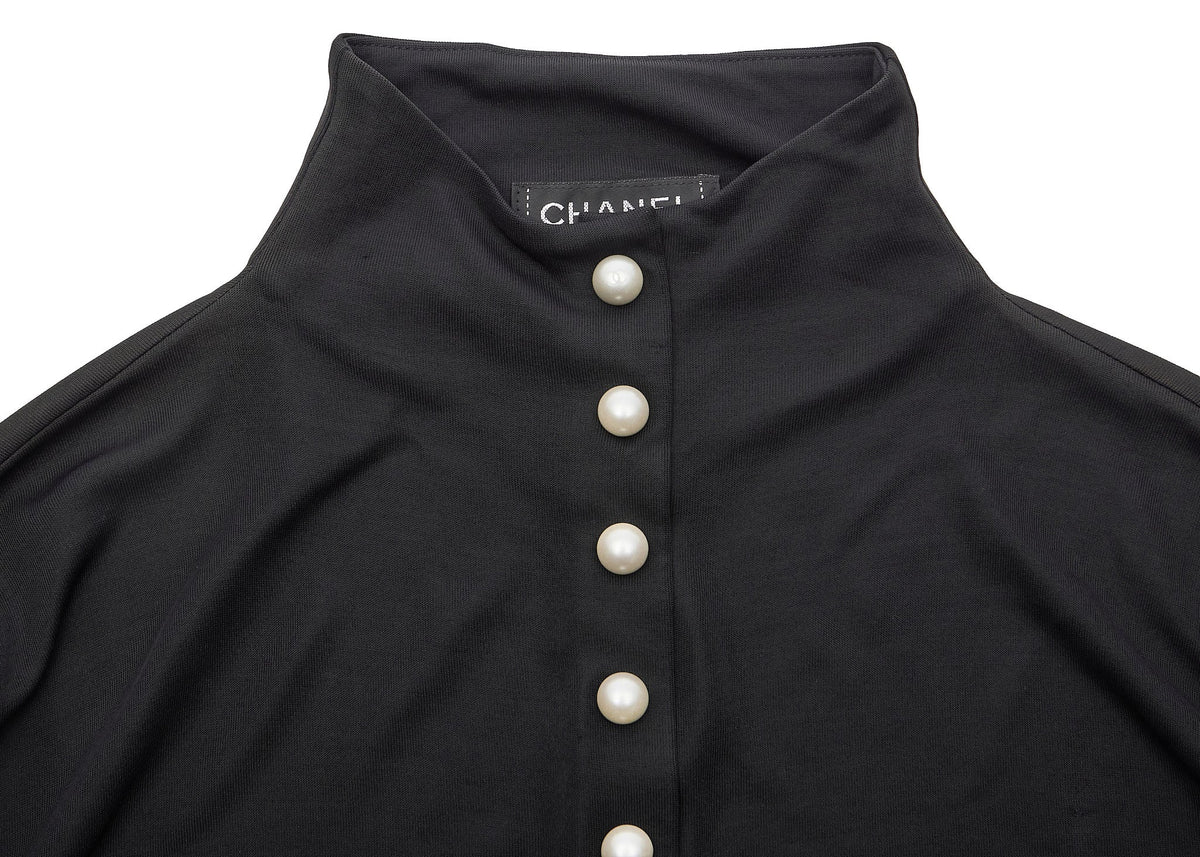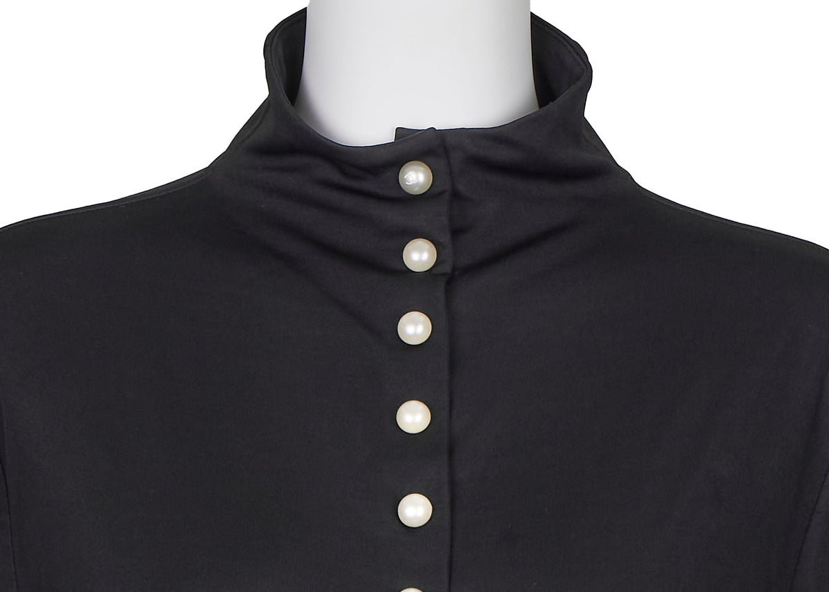 Elevate your wardrobe with the CHANEL Chanel Logo Pearl High Neck Long Sleeve Cut-and-Sew 46 Black Tops T-shirt Brand Apparel. This exquisite piece is not just clothing; it’s a statement of elegance and luxury that embodies the iconic CHANEL brand.