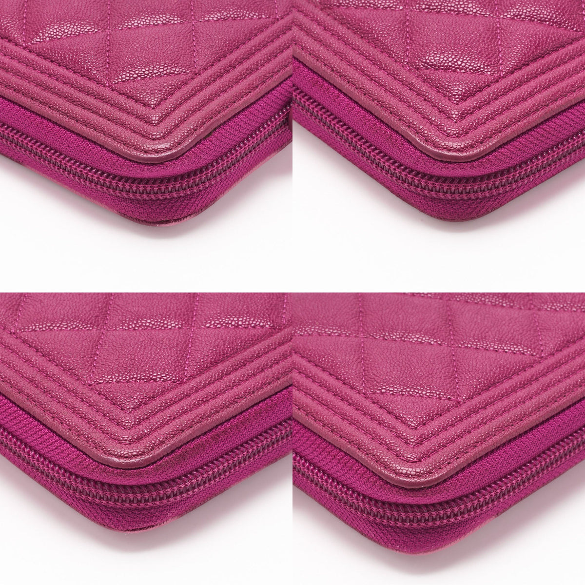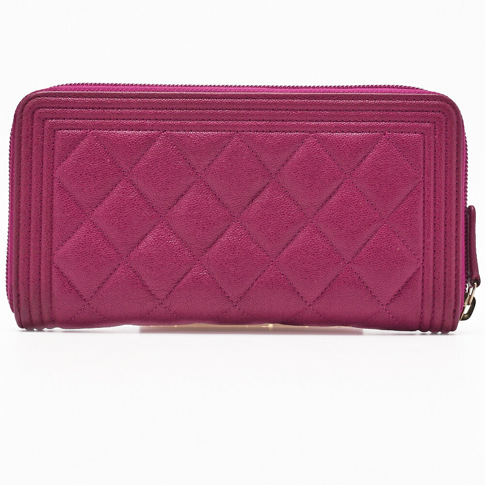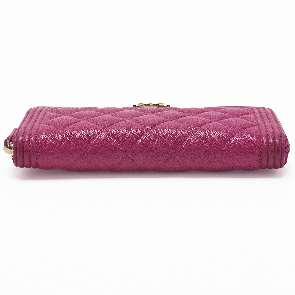 Elevate your accessory game with the stunning CHANEL Matelasse Boy Chanel Round Long Wallet crafted from luxurious Caviar Skin in a charming Rose Pink hue, adorned with exquisite Gold Fittings. This elegant wallet is not just a fashion statement; it's a blend of functionality and luxury that makes it a must-have for every sophisticated woman.