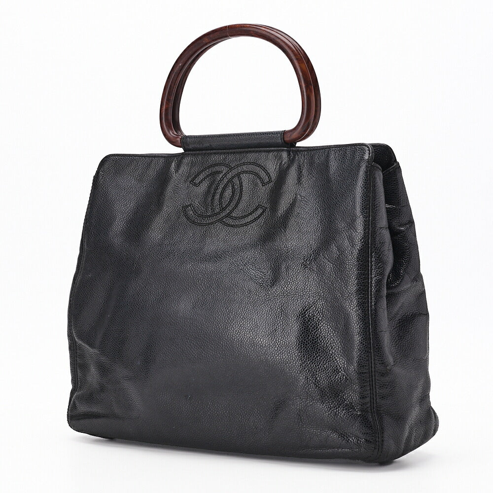 Pre-Owned Handbag Matelasse Coco Mark Wood Pattern Caviar Leather Black Gold-Tone Hardware Pre-Owned