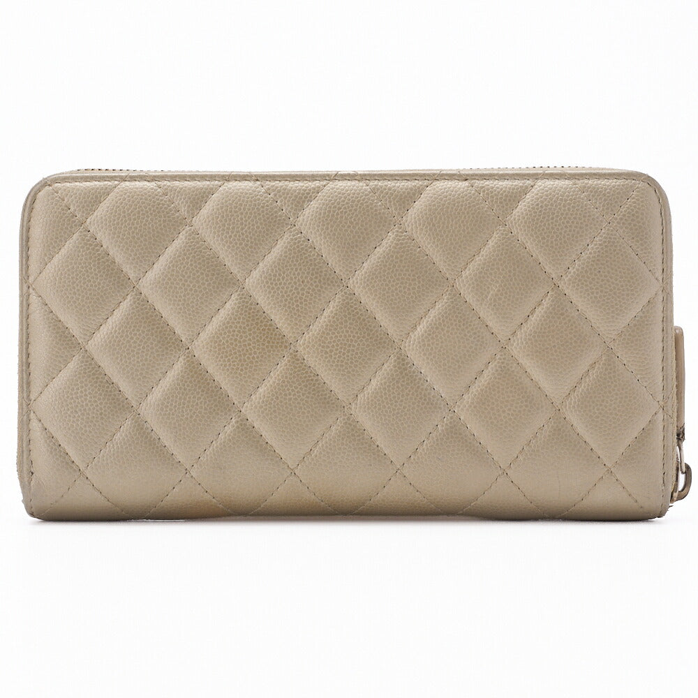 Indulge in timeless elegance and functionality today—add the CHANEL Matelasse Round Long Wallet Caviar Skin Goal to your cart now!
