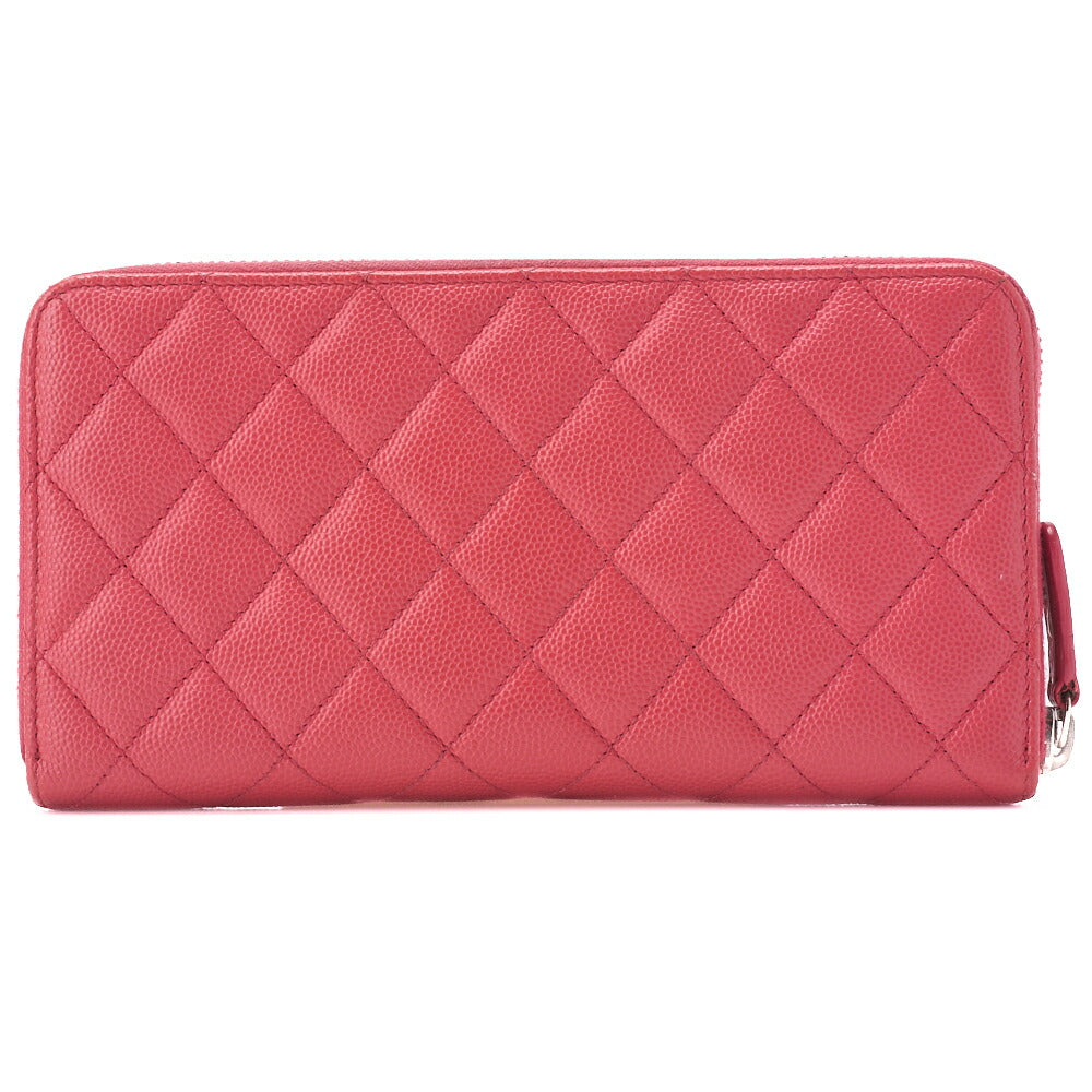 Pre-Owned Long Wallet Matelasse Caviar Leather Pink Silver-Tone Hardware Pre-Owned
