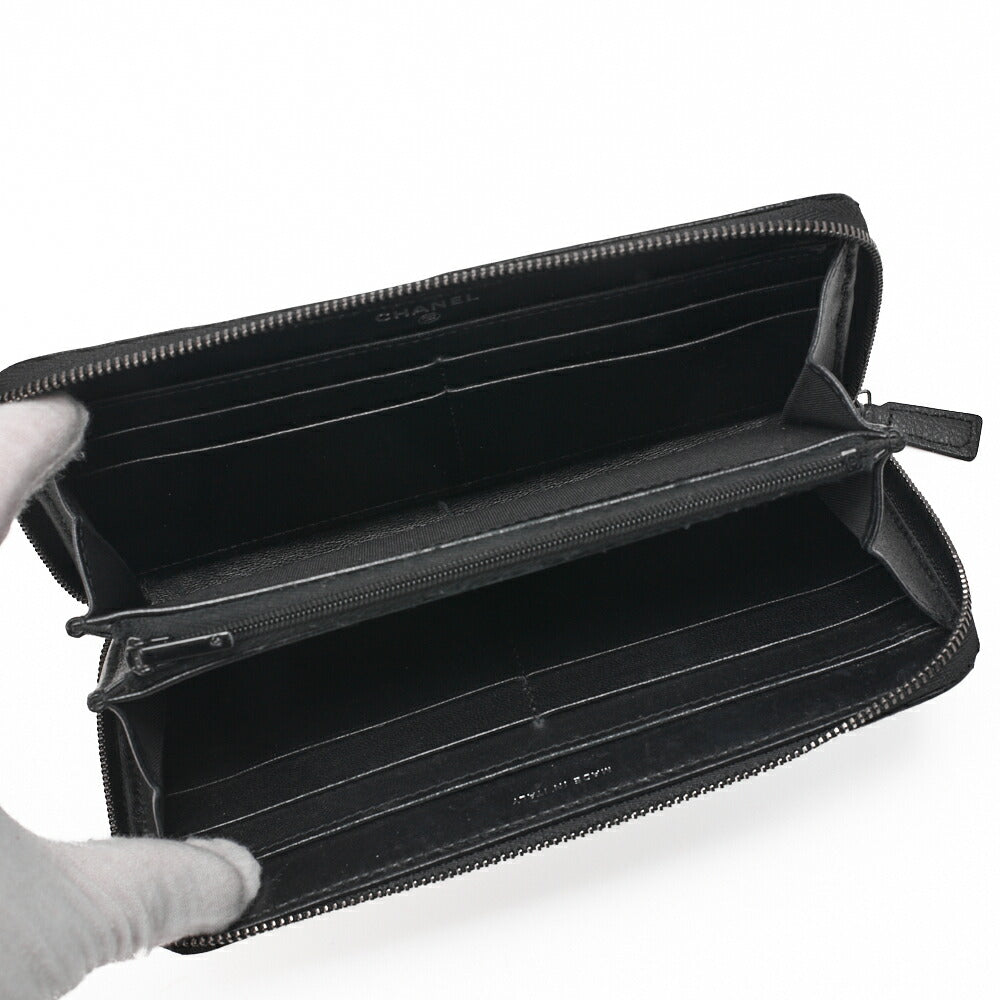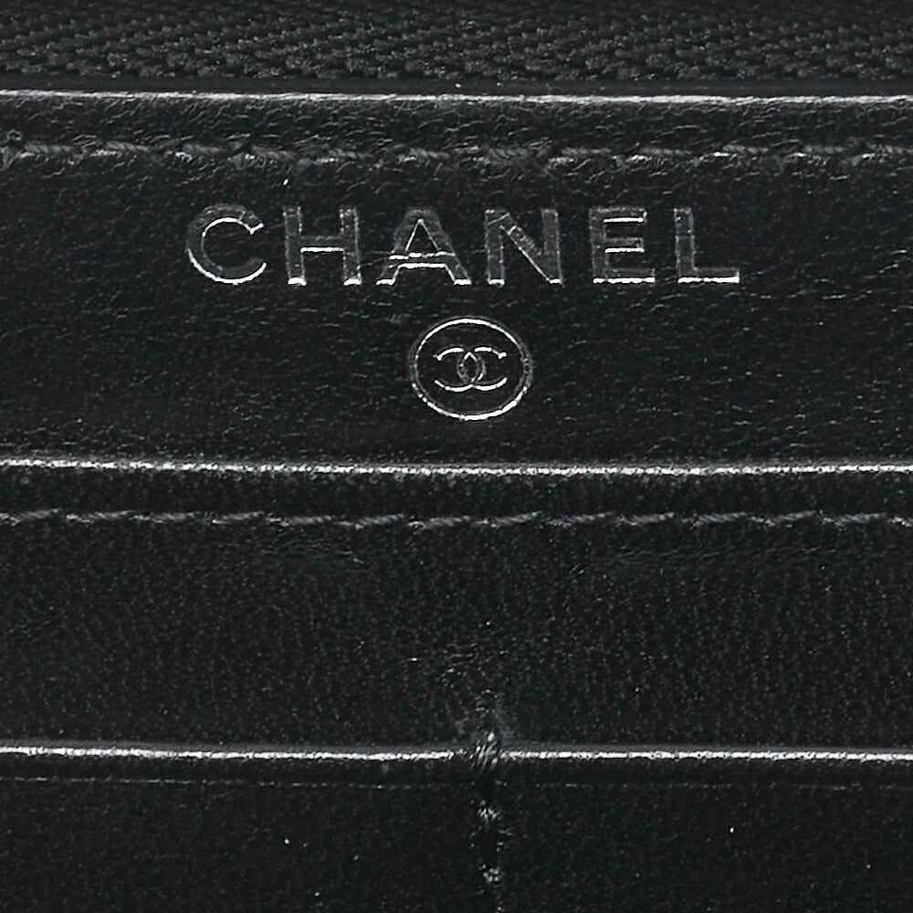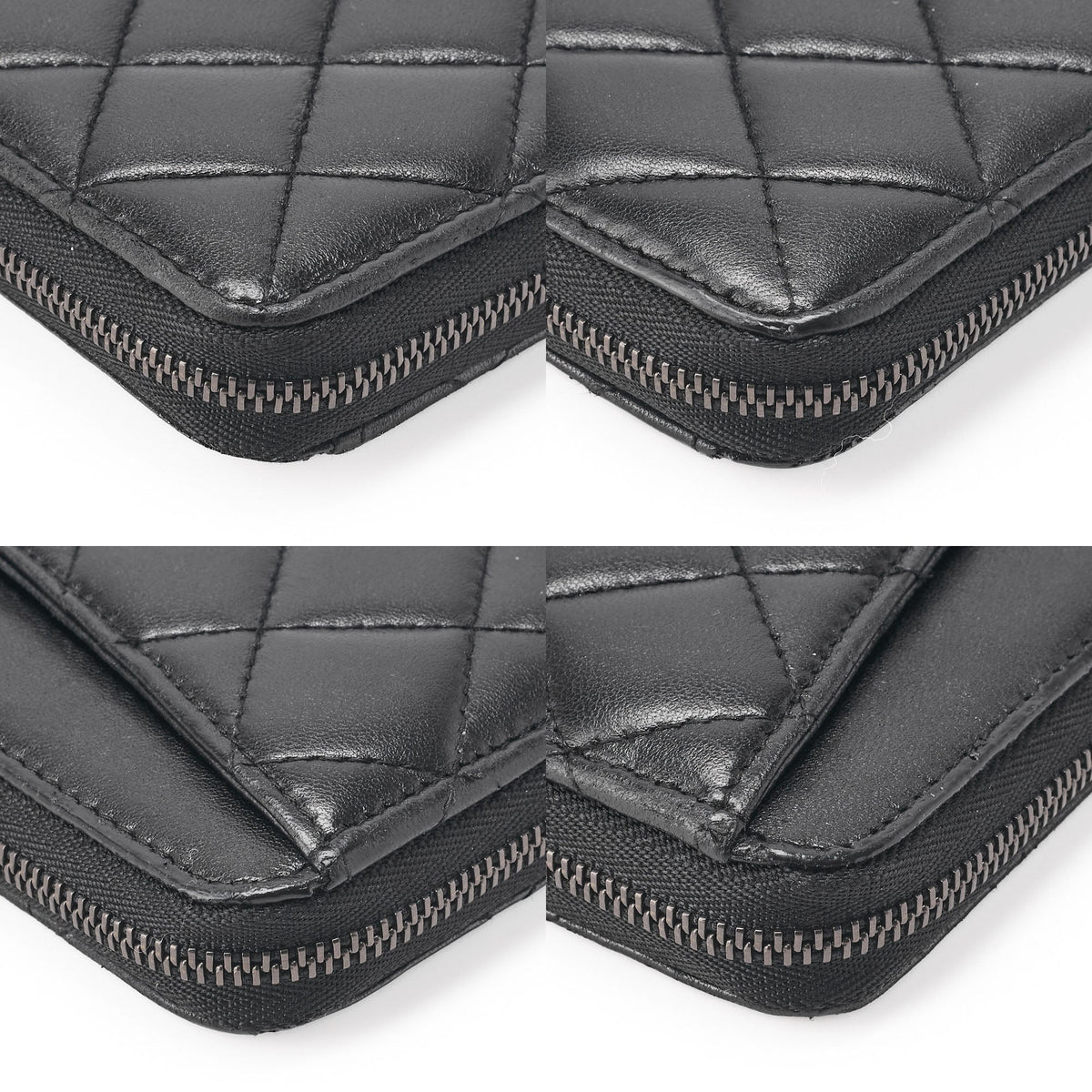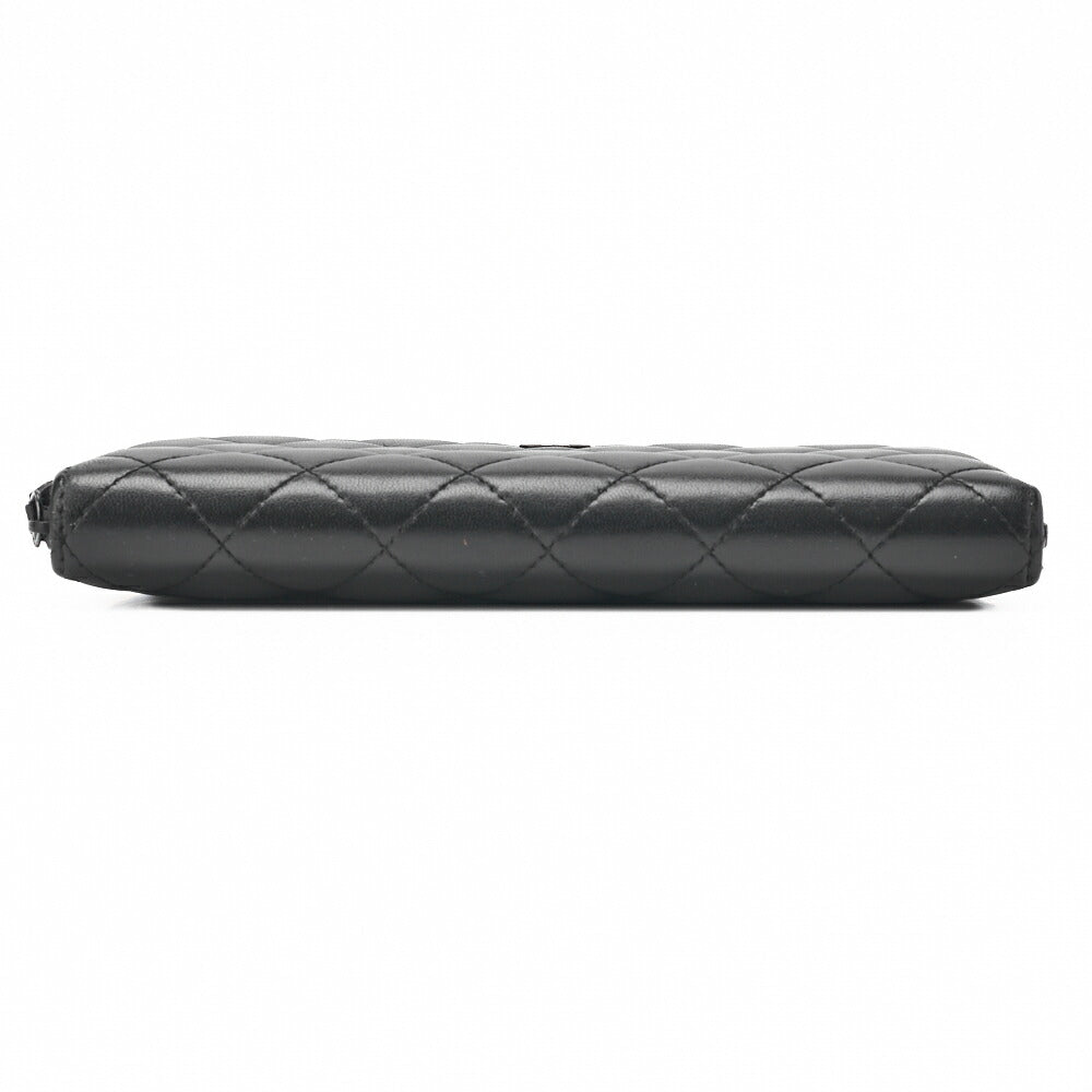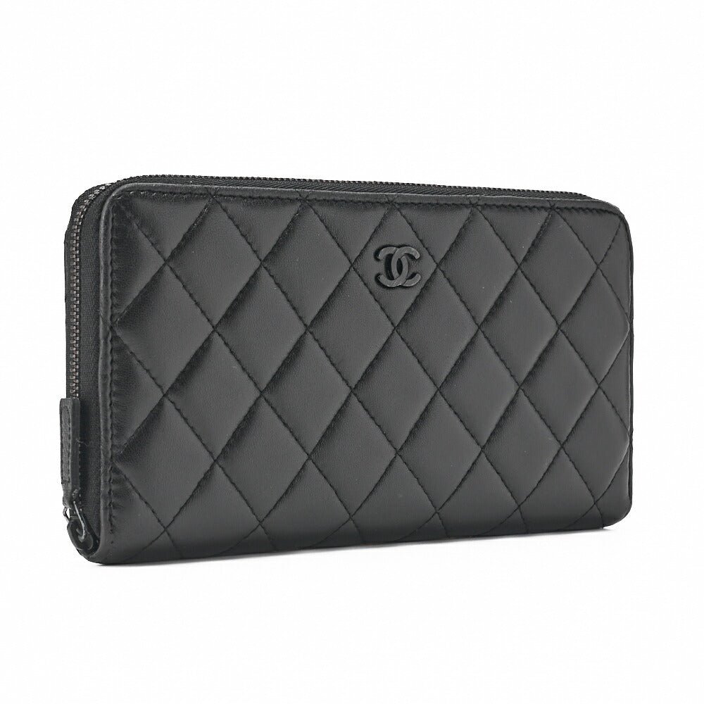 Elevate your accessory game with the exquisite CHANEL Matelasse Round Long Wallet, crafted from luxurious lambskin in a timeless black hue complemented by chic black metal fittings. This elegant wallet not only embodies sophistication but also offers unmatched functionality for the modern woman.