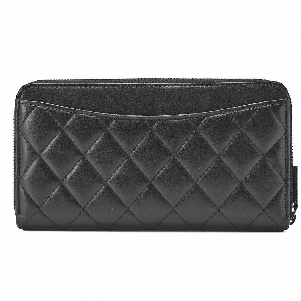 Pre-Owned Long Wallet Matelasse Lambskin Black Gold-Tone Hardware Pre-Owned