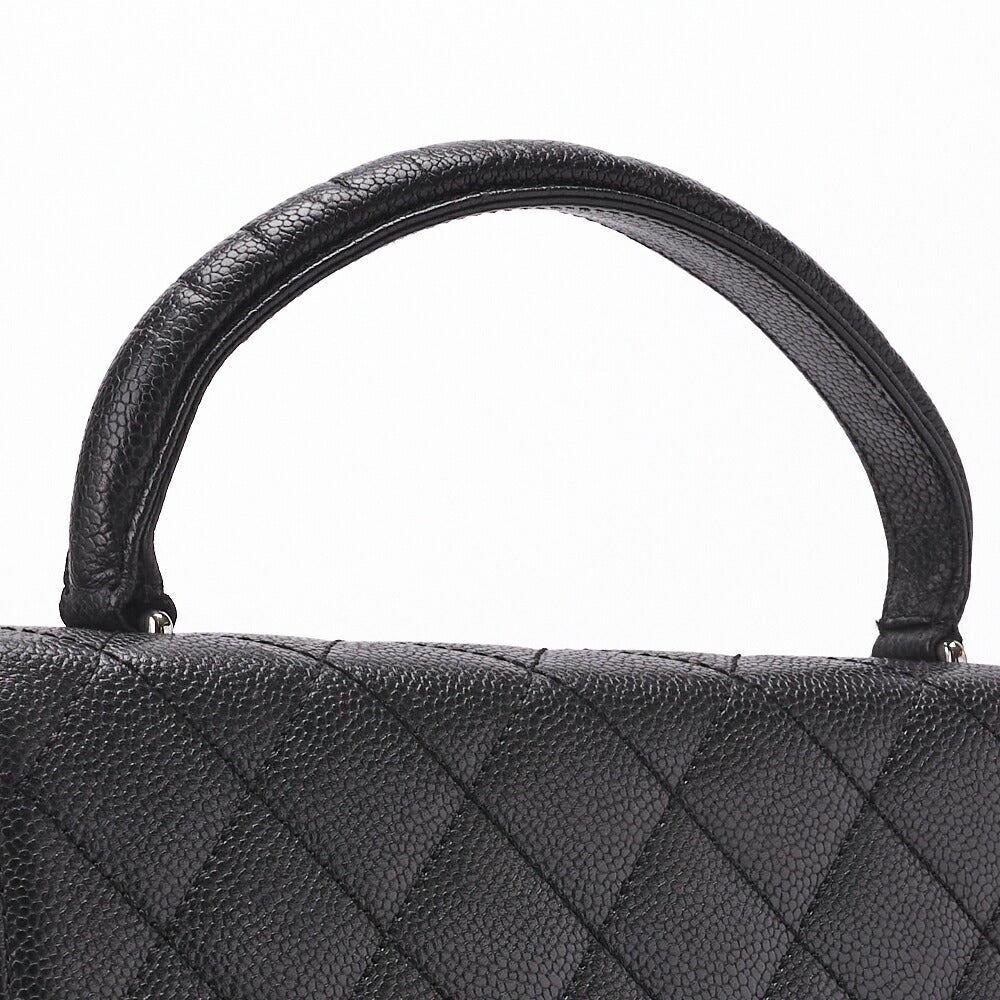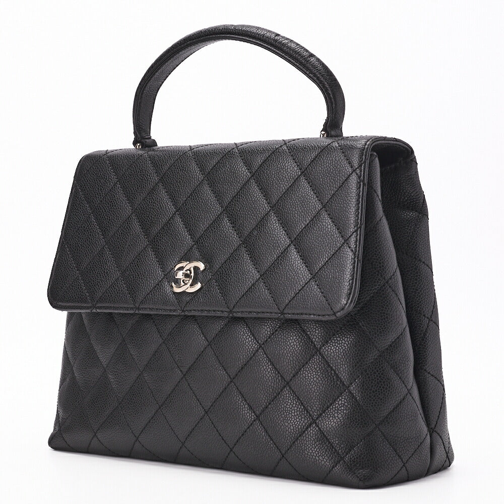 Introducing the exquisite CHANEL Matelasse Turn Lock Kelly Type Handbag in luxurious Caviar Skin, presented in a classic Black finish with stunning silver fittings. This elegant handbag combines timeless style with practical functionality, making it a must-have accessory for any fashion-savvy individual.