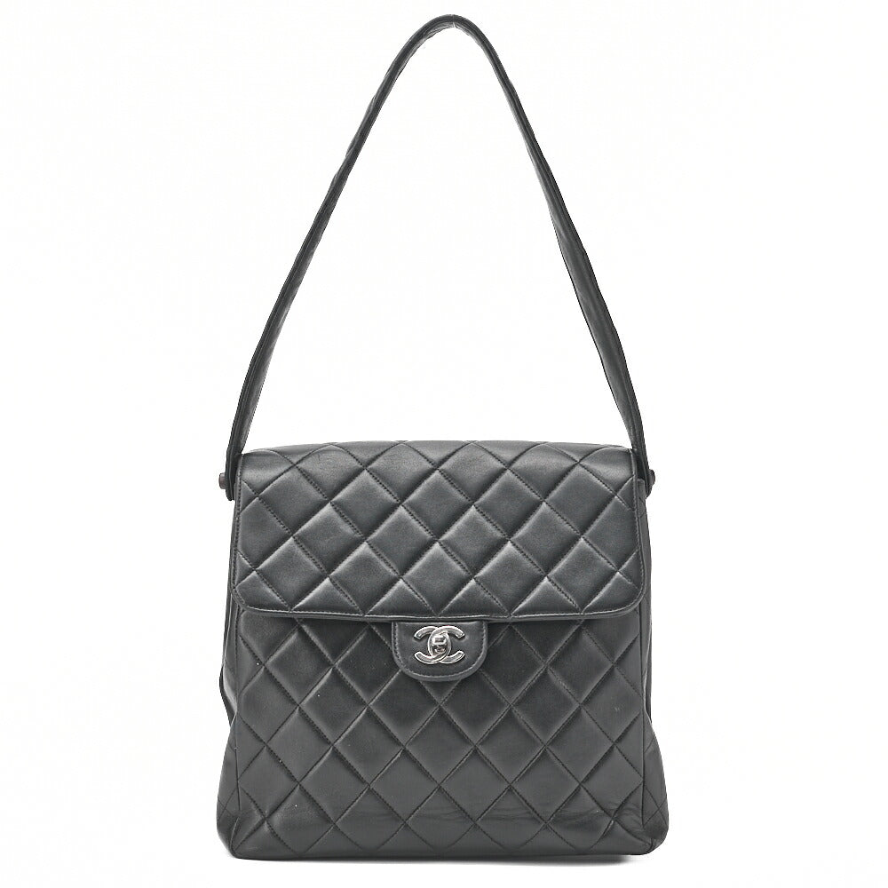 Pre-Owned Matelassé Double Face One Shoulder Bag Lambskin Black Silver-Tone Hardware, Pre-Owned