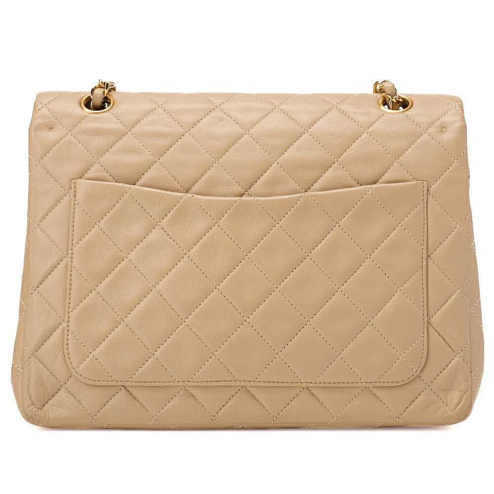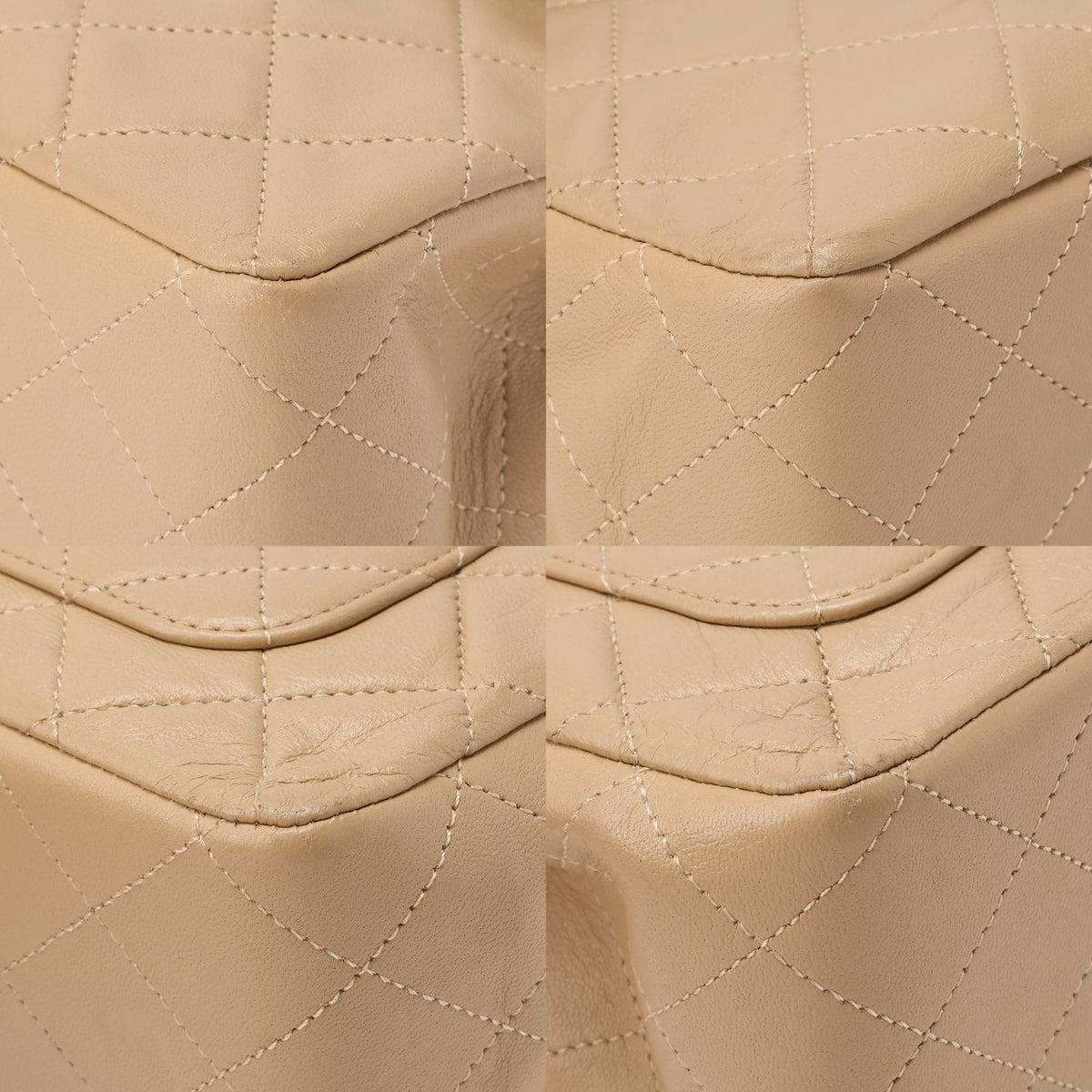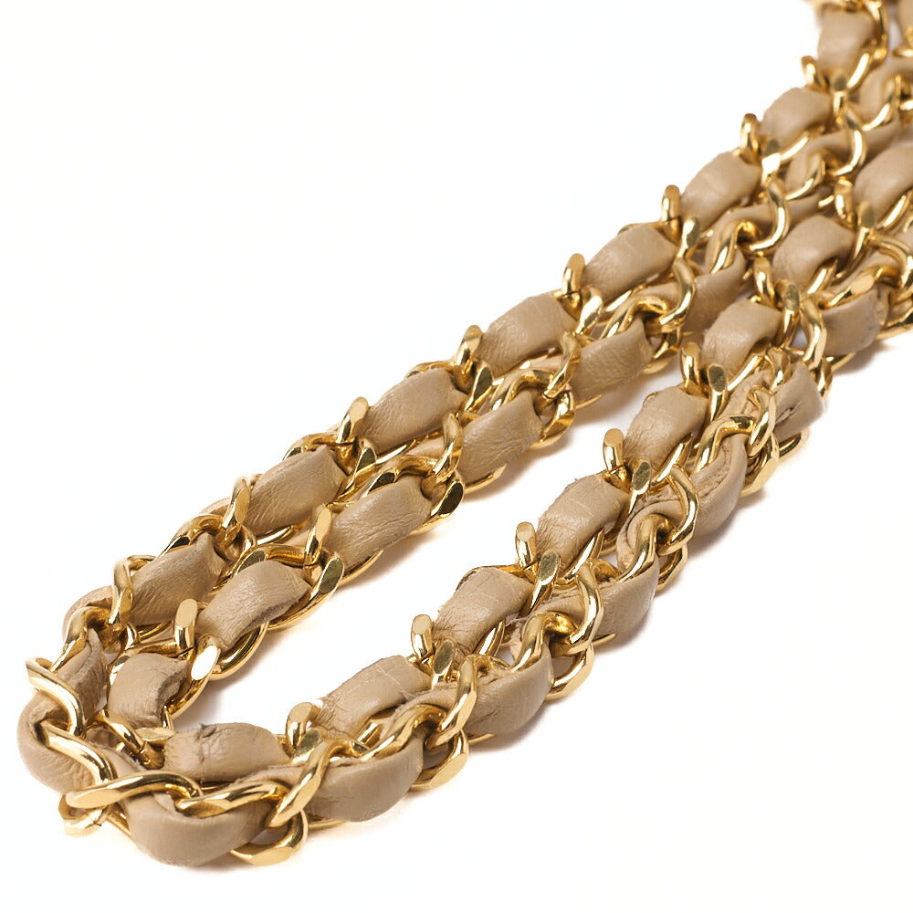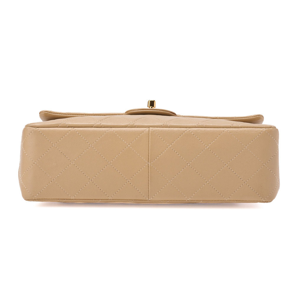 - Design: Matelassé quilted double-flap silhouette in beige lambskin