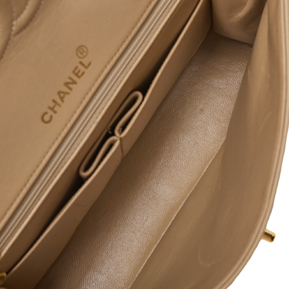 Pre-Owned Matelassé Double Flap 25cm Chain Shoulder Lambskin Beige Gold-Tone Hardware, Pre-Owned