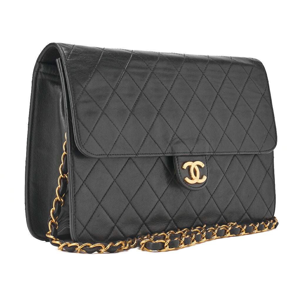 Pre-Owned Matelassé Push Lock Chain Shoulder Lambskin Black Gold-Tone Hardware, Pre-Owned
