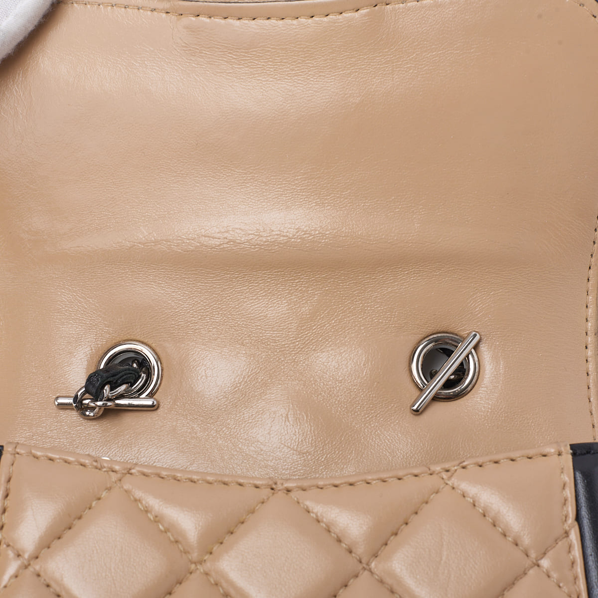 Indulge in luxury with the CHANEL Mini Matelasse Turn Lock Chain Shoulder Bag, expertly crafted from supple lambskin in a stunning Beige and Black combination with elegant gold fittings. This exquisite mini shoulder bag is not just an accessory; it's a statement piece that embodies sophistication and style.