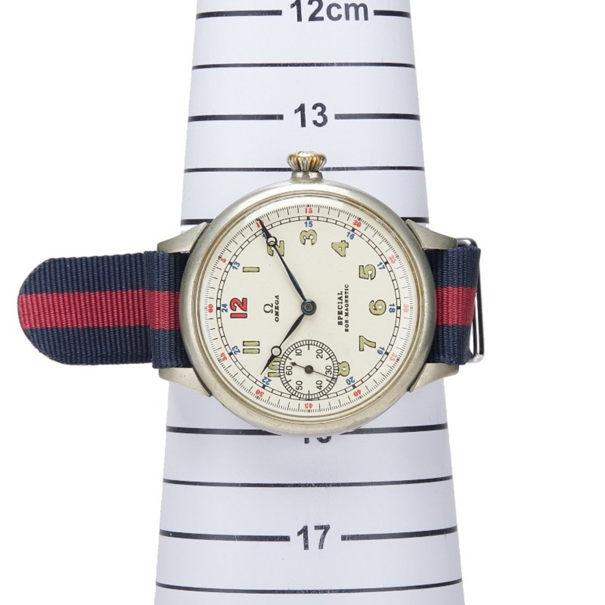 Pre-Owned OMEGA Antique Pilot's Watch with Special Non-Magnetic Strap (Aftermarket) Automatic Beige Dial Stainless Steel Nylon for Men