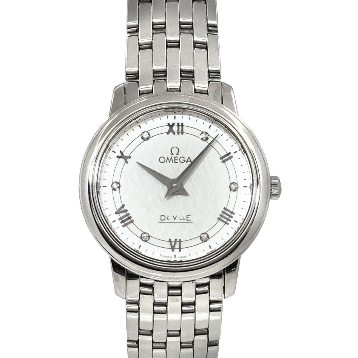 Pre-Owned OMEGA De Ville Prestige 424 10 27 60 52 002 Ladies Watch 6P Diamond Silver Quartz