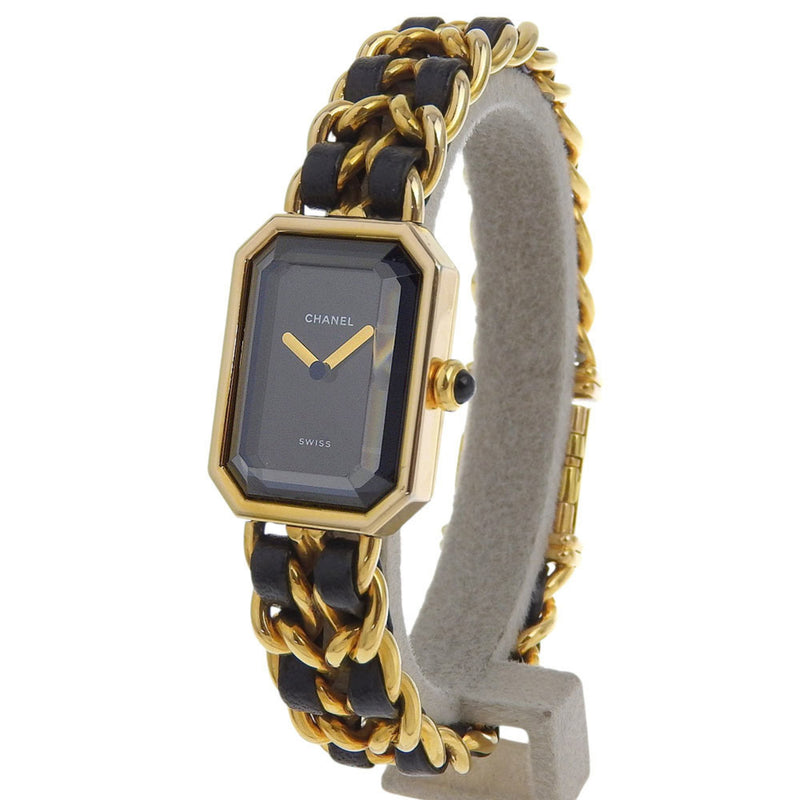 Pre-Owned CHANEL Premiere L Watch H0001 Gold-plated x embossed leather Quartz Analog display Black dial Ladies I213024034