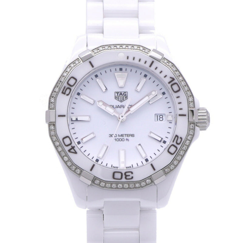 Pre-Owned Like new TAG Heuer Aquaracer Diamond Bezel WAY1396 Quartz Watch White Ceramic/Diamond Dial 1529TAG HEUER Men's