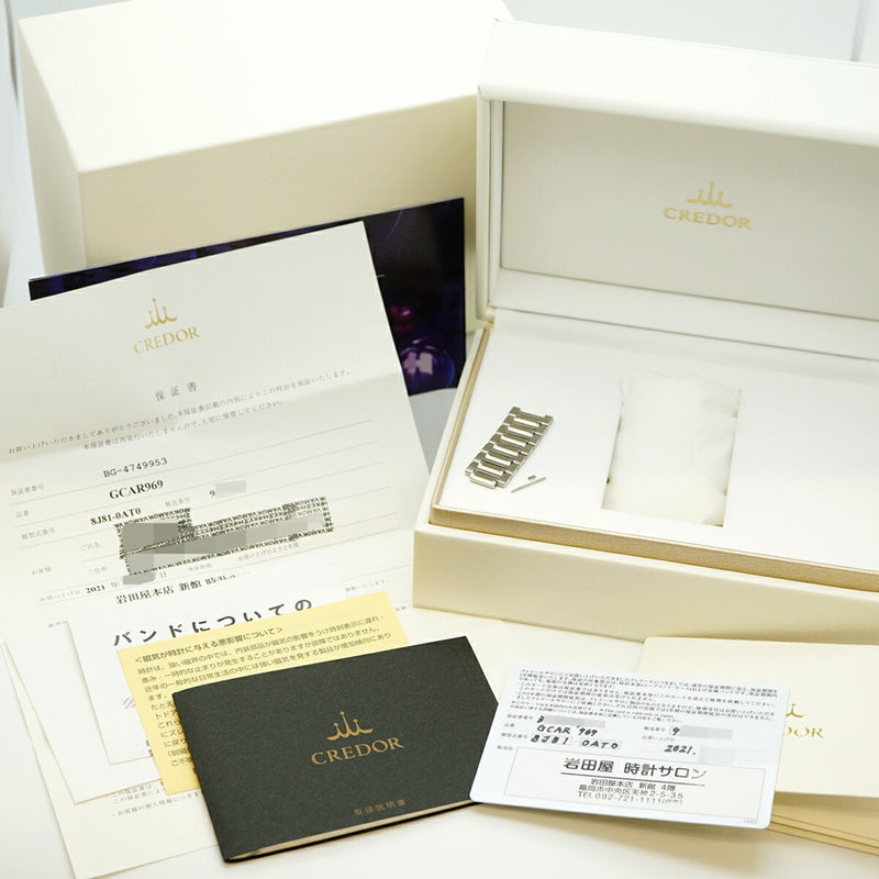 Pre-Owned Seiko Credor Pacific GCAR007 8J81-6A20 SS 18K White Gold Black Quartz Wristwatch Silver Dial 0040SEIKO