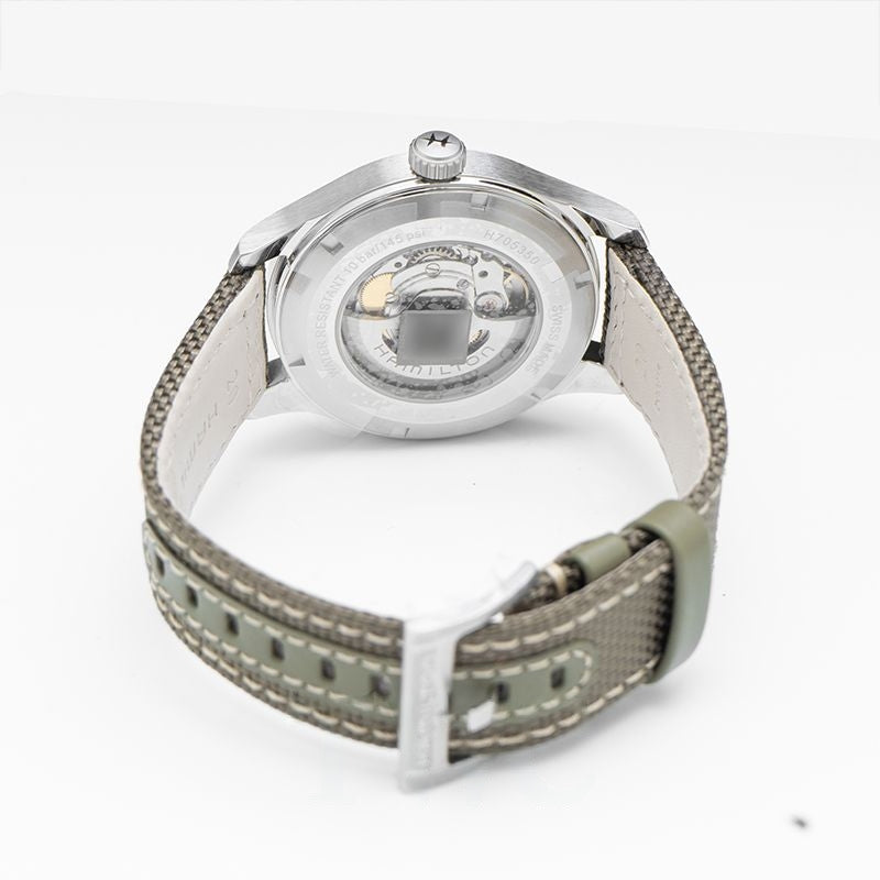 The Hamilton Khaki Field Automatic (Ref. H70535081) is the perfect companion for modern adventurers who value both performance and style. With its casual yet contemporary design, this versatile timepiece is built for life outdoors without sacrificing elegance. Powered by the H-30 automatic movement, it offers an impressive 80-hour power reserve and water resistance up to 10 bar (100m), ensuring reliability in any environment. The durable khaki textile strap provides comfort and ease for everyday wear, while the rugged build makes it ideal for active lifestyles. A watch designed to keep up with every journey—whether in the city or the great outdoors.
