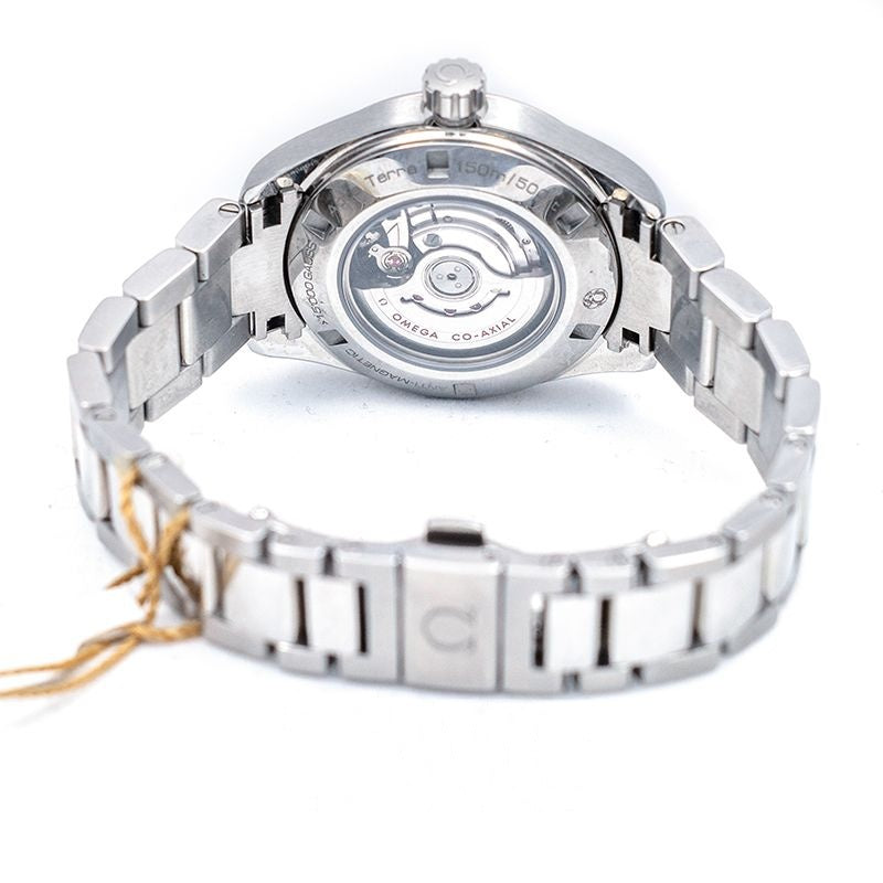 The Omega Seamaster Aqua Terra Master Co-Axial (Ref. 231.10.34.20.55.002) is a perfect blend of sportiness and luxury, designed for those with an active lifestyle. Its 34mm stainless steel case and matching bracelet house a pearled mother-of-pearl dial, elegantly set with 12 diamond indexes and a date window at 6 o’clock. Beneath its stylish exterior lies the revolutionary Omega Master Co-Axial Calibre 8520—engineered to withstand magnetic fields greater than 15,000 gauss while delivering unmatched precision. With its elegant design, robust performance, and innovative movement, the Aqua Terra is both a refined accessory and a reliable companion for everyday wear.