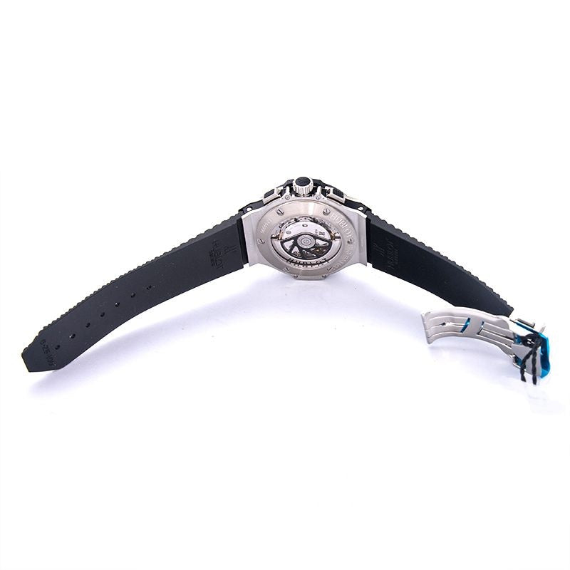 Hublot is known throughout the world for manufacturing luxurious and elegant watches, and the timepieces from the Big Bang watch collection do justice to the company's reputation. The 301.SB.131.RX model has a 44mm case made from polished and satin-finished stainless steel. The black ceramic bezel features six H-shaped titanium screws and encompasses the stamped dial and its rhodium-plated hands and indexes. The sub-dials are placed at the 3, 6, and 9 o'clock positions while the date window sits between the 4 and 5 o'clock positions. The rubber strap is fitted with a steel deployant buckle clasp and completed the stunning design of the watch.