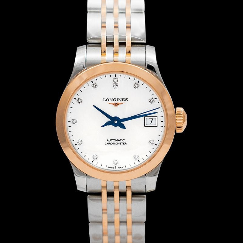 Record ? 26.00?mm White mother-of-pearl Dial in Stainless Steel, 18 karat pink gold cap 200 L23205877