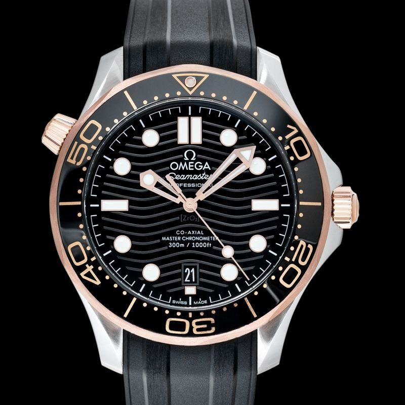 Seamaster 42 mm Black Dial in Stainless Steel, Sedna Gold 210.22.42.20.01.002