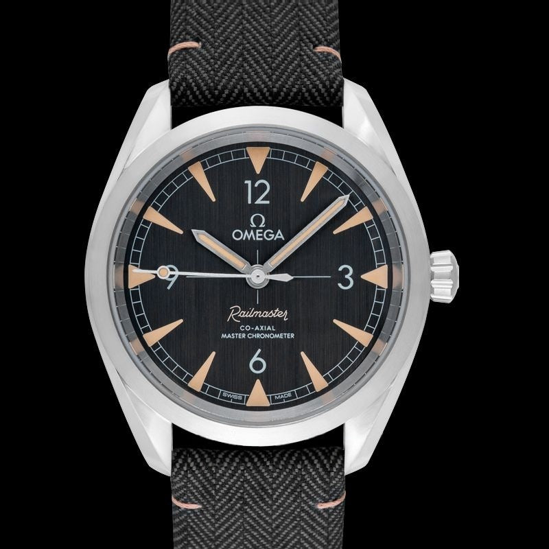 The sumptuously rich Omega Seamaster Railmaster 220.12.40.20.01.001 is a decadent beauty, ordained in its classic but modern apparel. It pays homage to the spirit of railway systems, in an innovative yet subtle manner encasing itself in a stainless steel 40mm case, with an arabesque wave edged on the back. Its dial is brushed in luscious black, enveloping stainless steel hands, and recessed hour-markers gleamingly lit by Super-LumiNova. The watch indicates vintage pleasures with a beige second hand uniquely boasting of its elegance, making it a perfect companion for memorable evenings. The watch is water-resistant at 150M, embodied by a two-tone grey textile strap featuring a Naiad Lock design, and a domed scratch-resistant sapphire crystal.