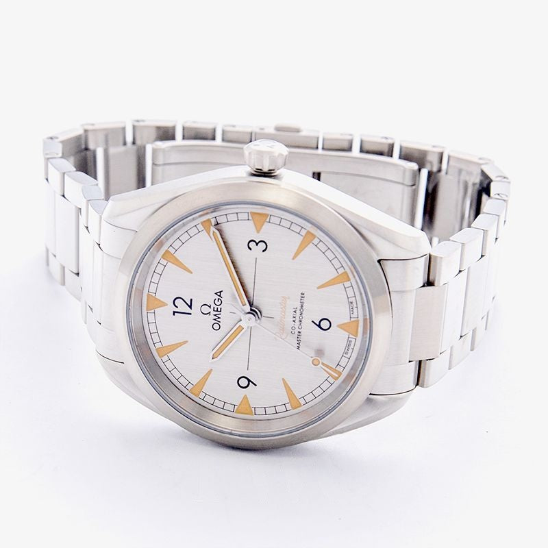 The OMEGA Railmaster Co-Axial Master Chronometer (Ref. 220.10.40.20.06.001) pays tribute to the original 1957 Railmaster, crafted for professionals working near strong electrical fields. Housed in a 40mm stainless steel case, this modern reinterpretation features a vertically brushed "blue jeans" dial with vintage-style Super-LumiNova hour markers and a transferred beige “Railmaster” logo, giving it a classic, understated appeal. Resistant to magnetic fields up to 15,000 gausses, the watch is powered by the OMEGA Co-Axial Master Chronometer Calibre 8806, certified by METAS for precision, durability, and anti-magnetic performance.