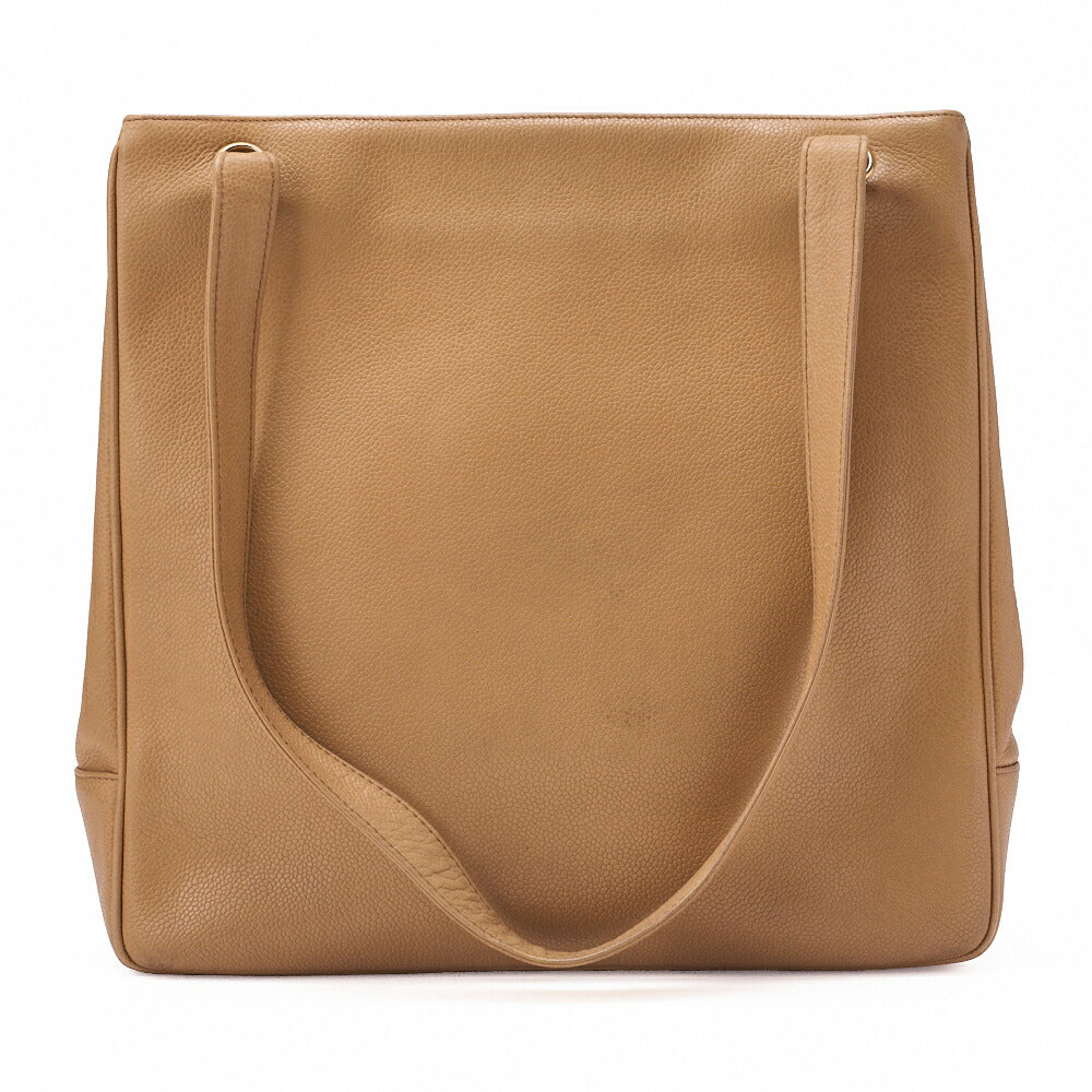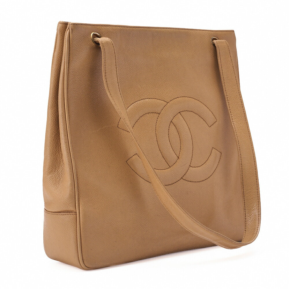 Pre-Owned Big Coco Mark Tote Bag Caviar Skin Beige Gold-Tone Hardware, Pre-Owned