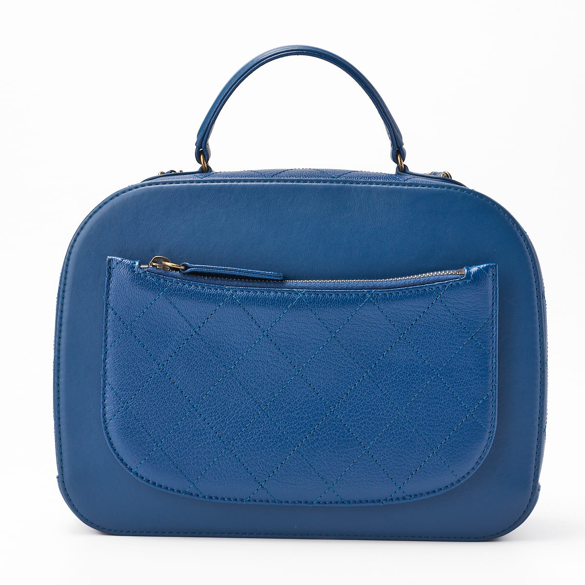 Pre-Owned Big Coco Top Handle 2WAY Chain Shoulder Bag Lambskin Caviar Skin Blue Gold-Tone Hardware Pre-Owned