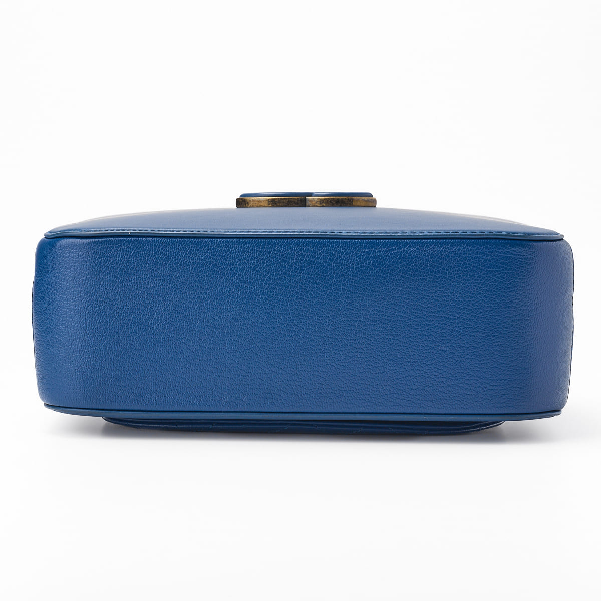 Crafted from high-quality materials, this handbag features a stunning blue color adorned with gold fittings that add a touch of sophistication. Measuring approximately W24cm x H18cm x D8cm, it is designed to hold all your essentials with ease.