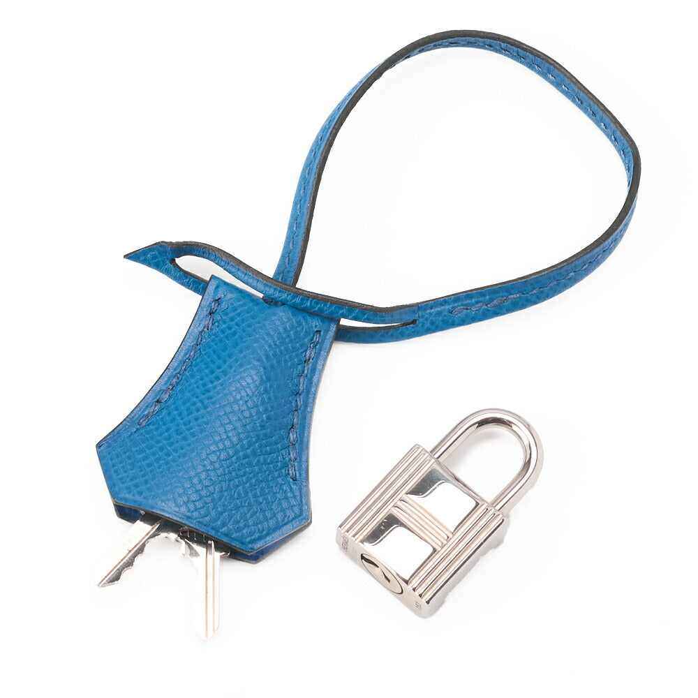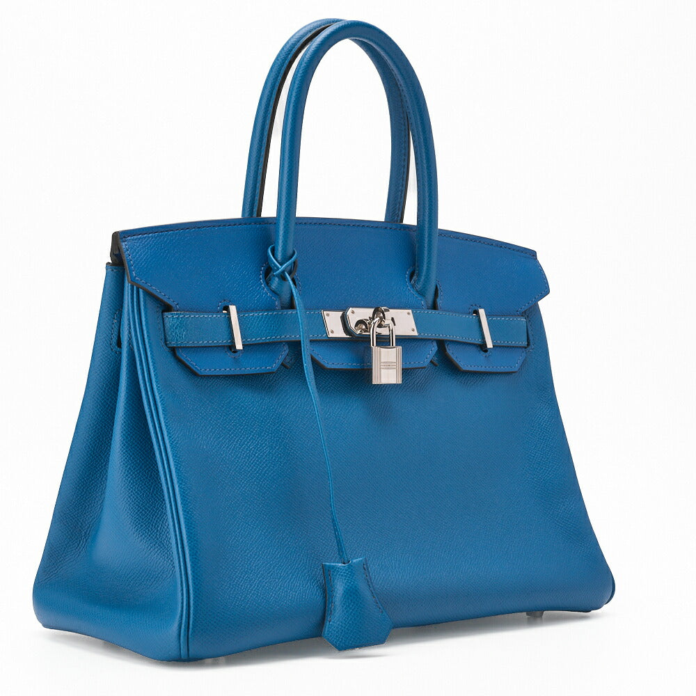 Experience the epitome of luxury with the HERMES Hermes Birkin 30 Handbag Epson Blue Paon. This exquisite piece, crafted from premium Epson leather, showcases a stunning Blue Paon hue that captivates attention while adding a pop of color to any ensemble. The silver metal fittings perfectly complement the rich blue, offering a touch of elegance that is unmistakably HERMES.