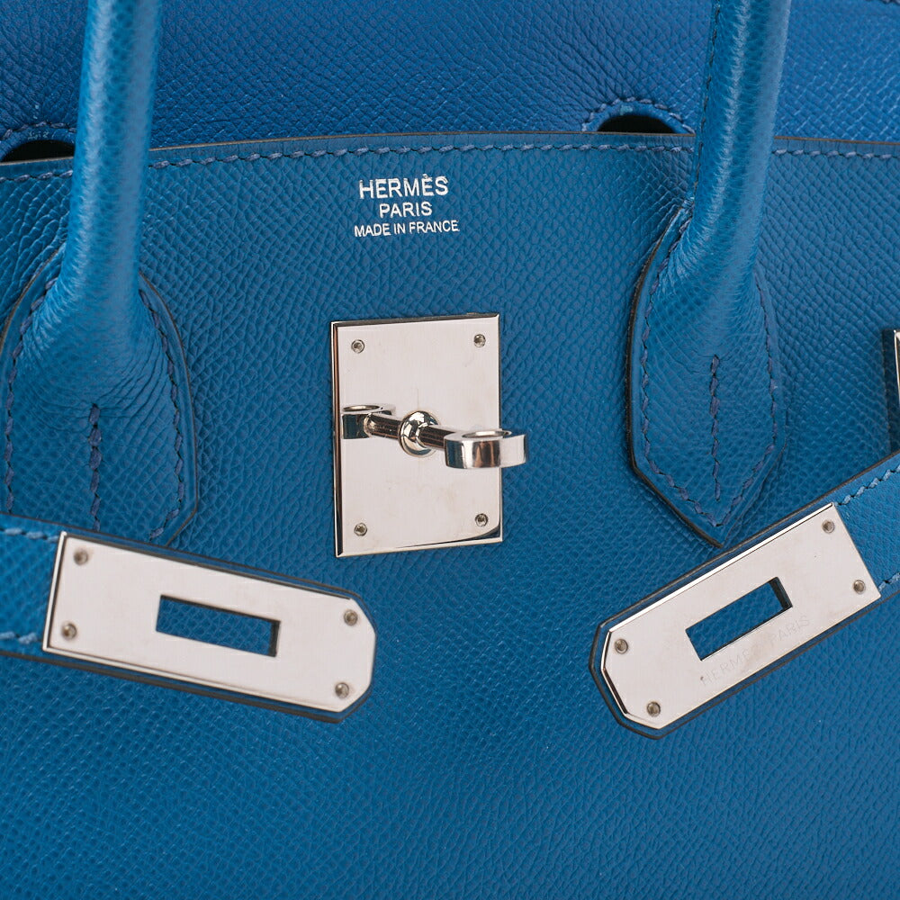 Pre-Owned Birkin 30 Handbag Epson Blue Paon Silver-Tone Hardware Pre-Owned