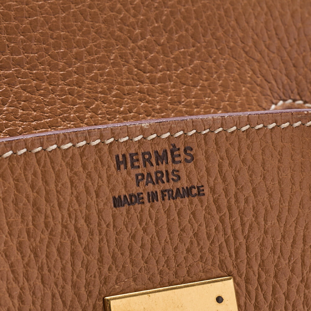 Experience the timeless elegance of the HERMES Hermes Birkin 35 Handbag in a stunning Natural Sable color, beautifully complemented by luxurious gold fittings. Crafted from premium Ardennes leather, this handbag not only represents status but also delivers unmatched durability and style.