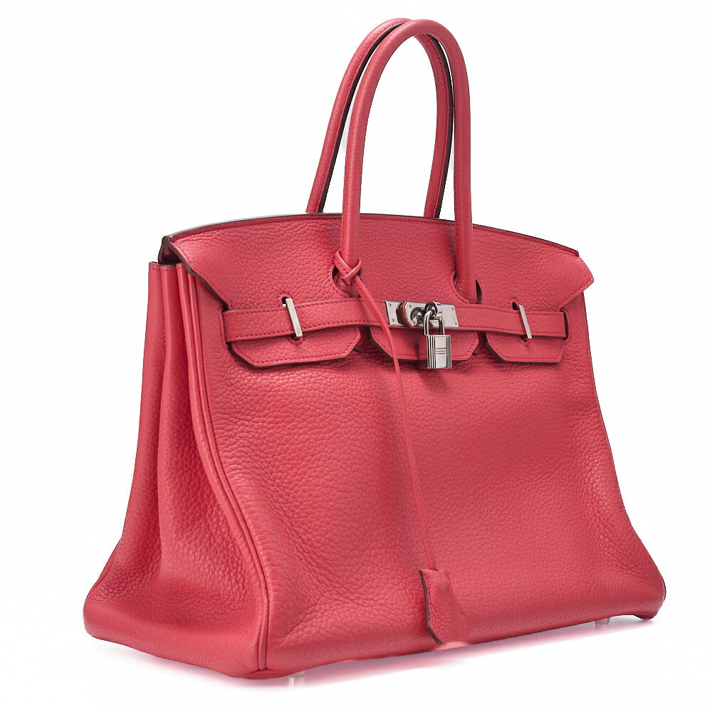 HERMES Birkin 35 Handbag Tryon Clemence Bougainvillea with Silver-Tone Hardware, Pre-Owned by HERMES, delivers timeless luxury for everyday, on-the-go sophistication.