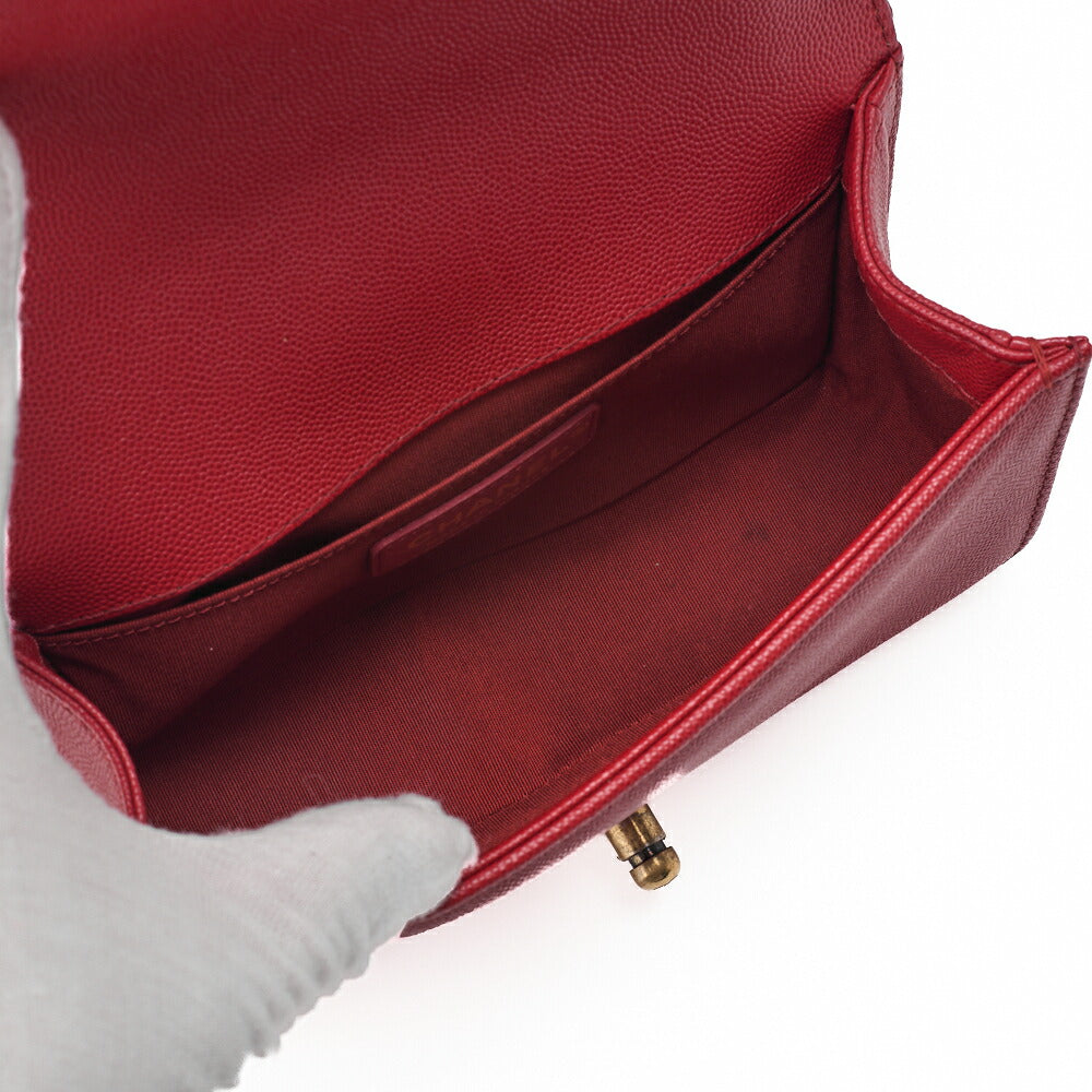 Pre-Owned Boy V-Stitch Chain Shoulder Caviar Skin Red Gold-Tone Hardware, Pre-Owned