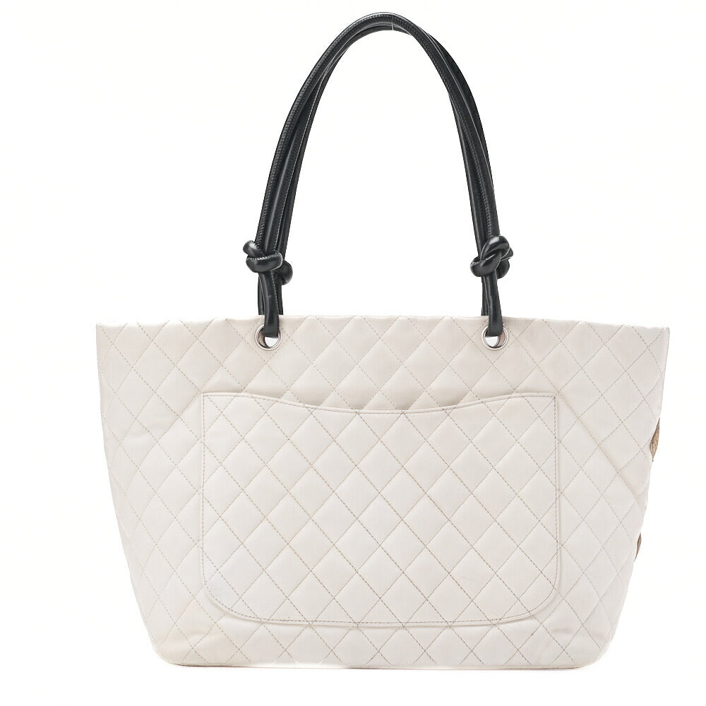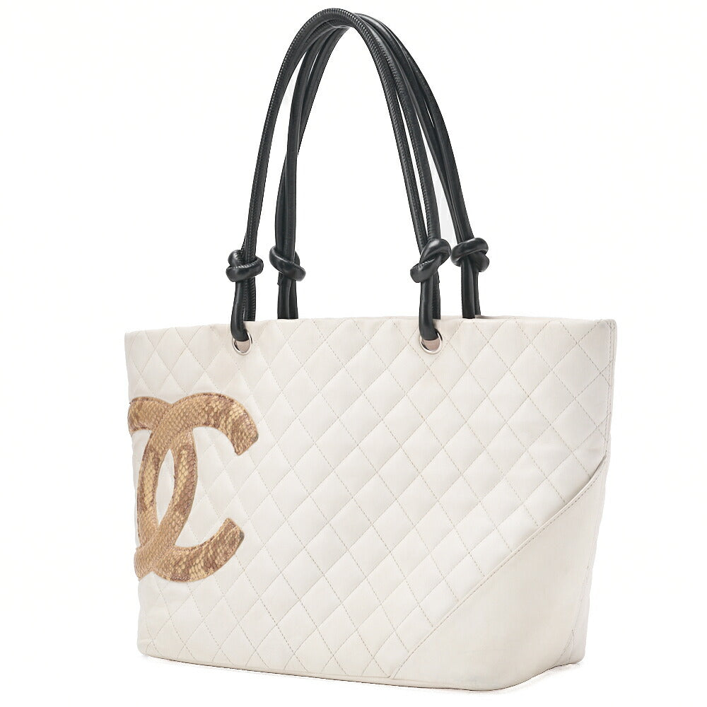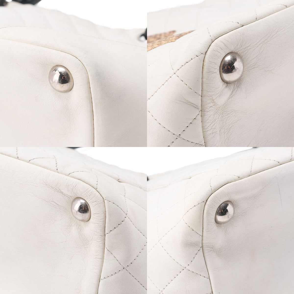 Indulge in the elegance of the CHANEL Chanel Cambon Line Matelasse Calfskin Python White Tote Bag featuring luxurious silver fittings. This exquisite women's tote is not just a bag; it's a statement piece that embodies sophistication and timeless style.