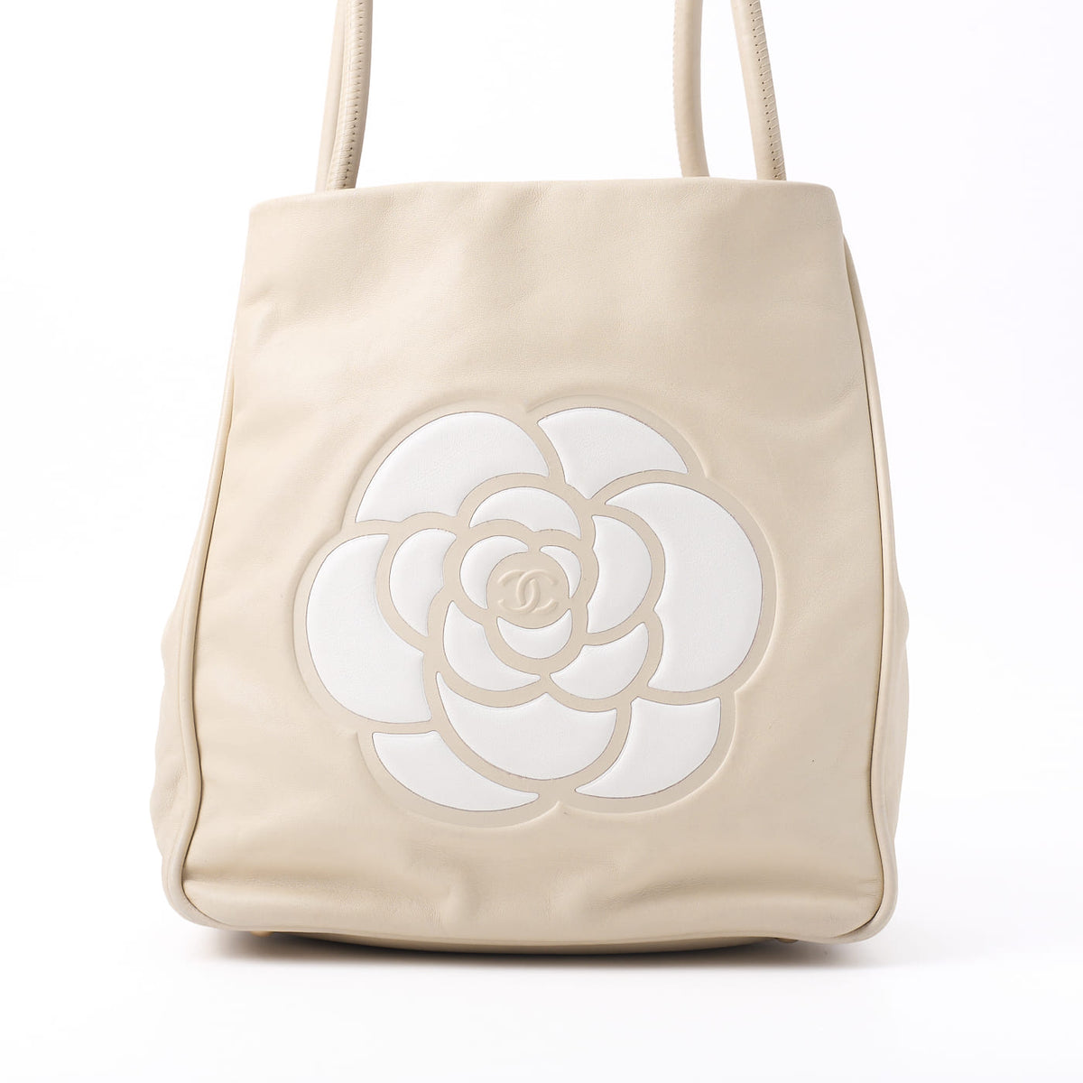 Pre-Owned Tote Bag Camellia Line Lambskin Ivory Gold-Tone Hardware Pre-Owned