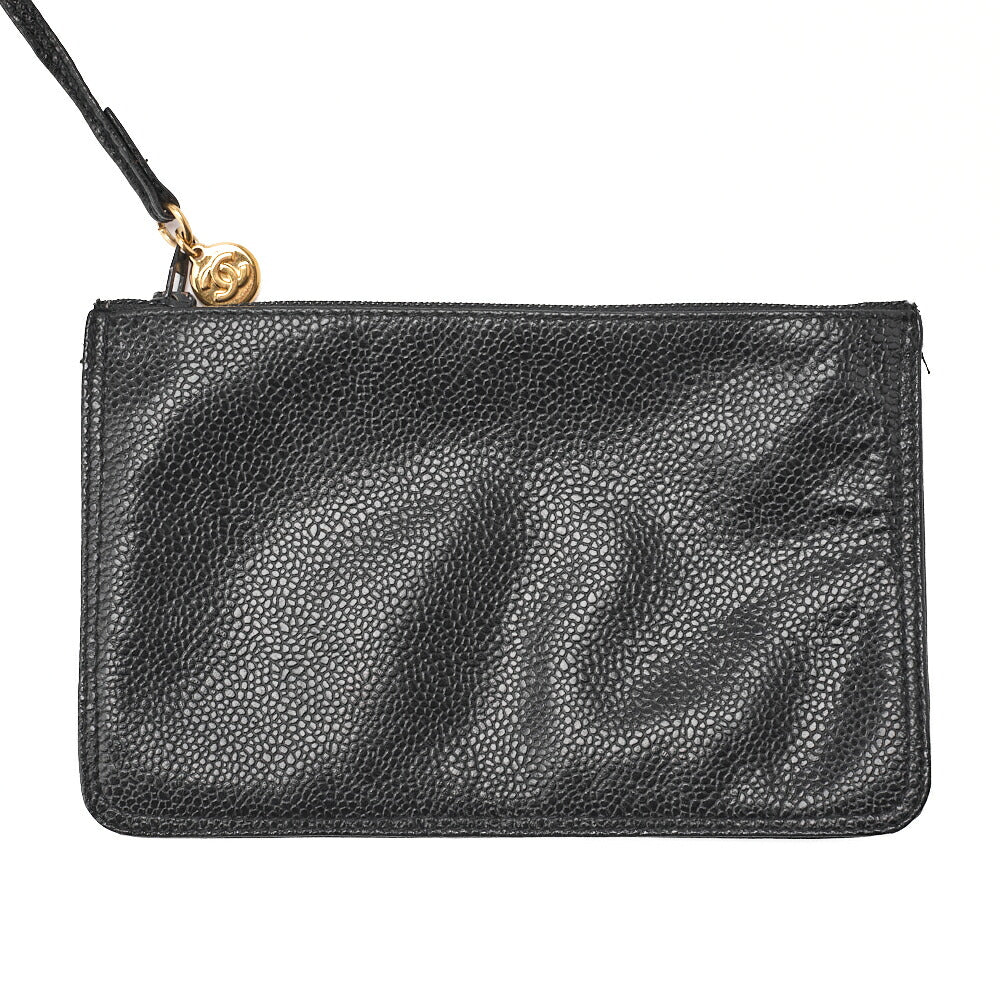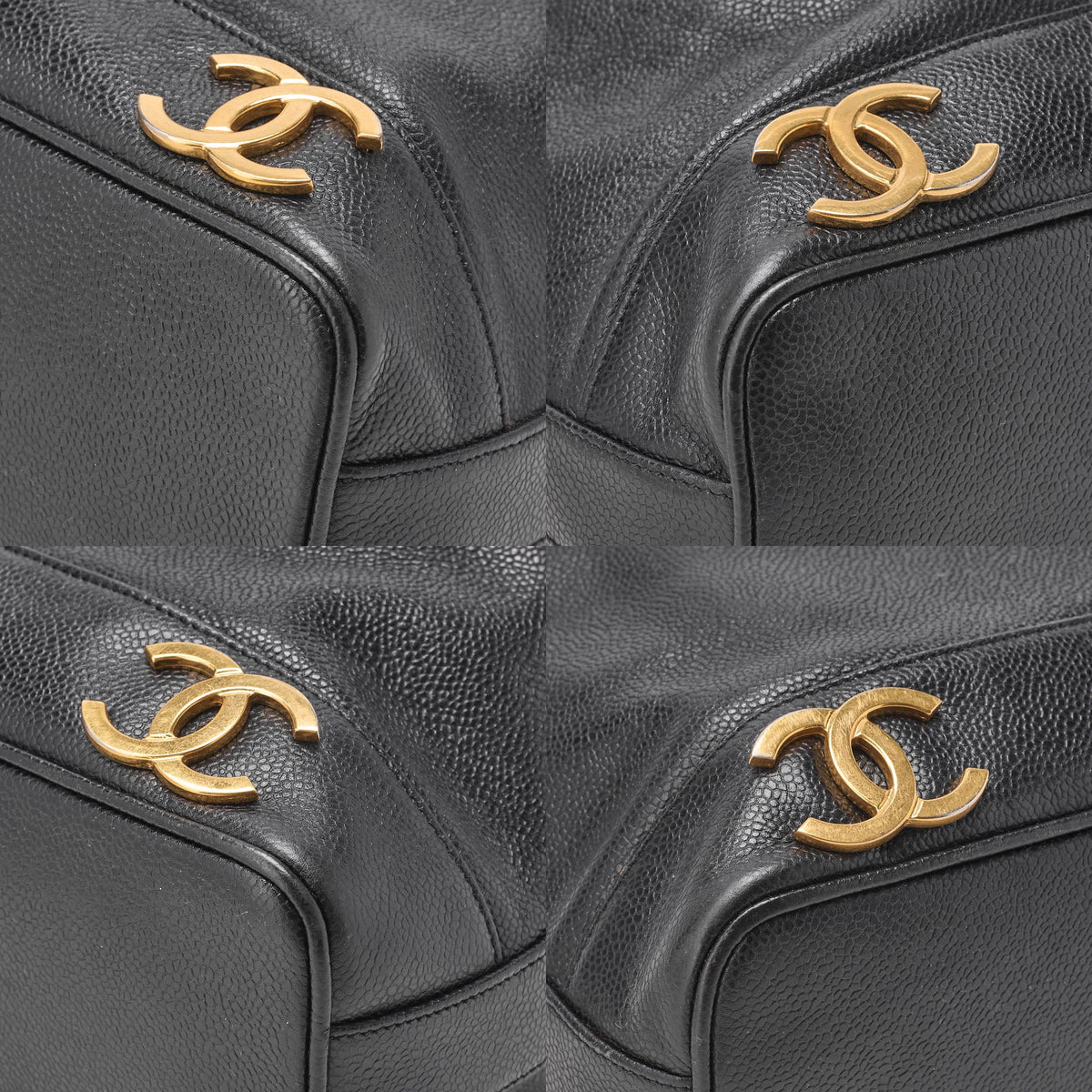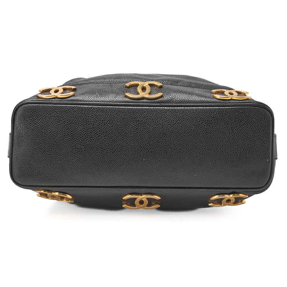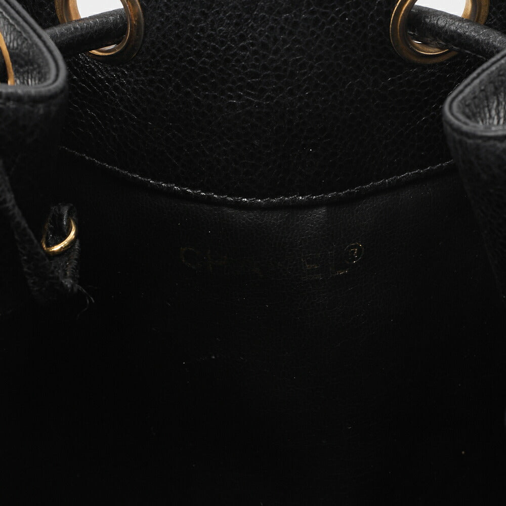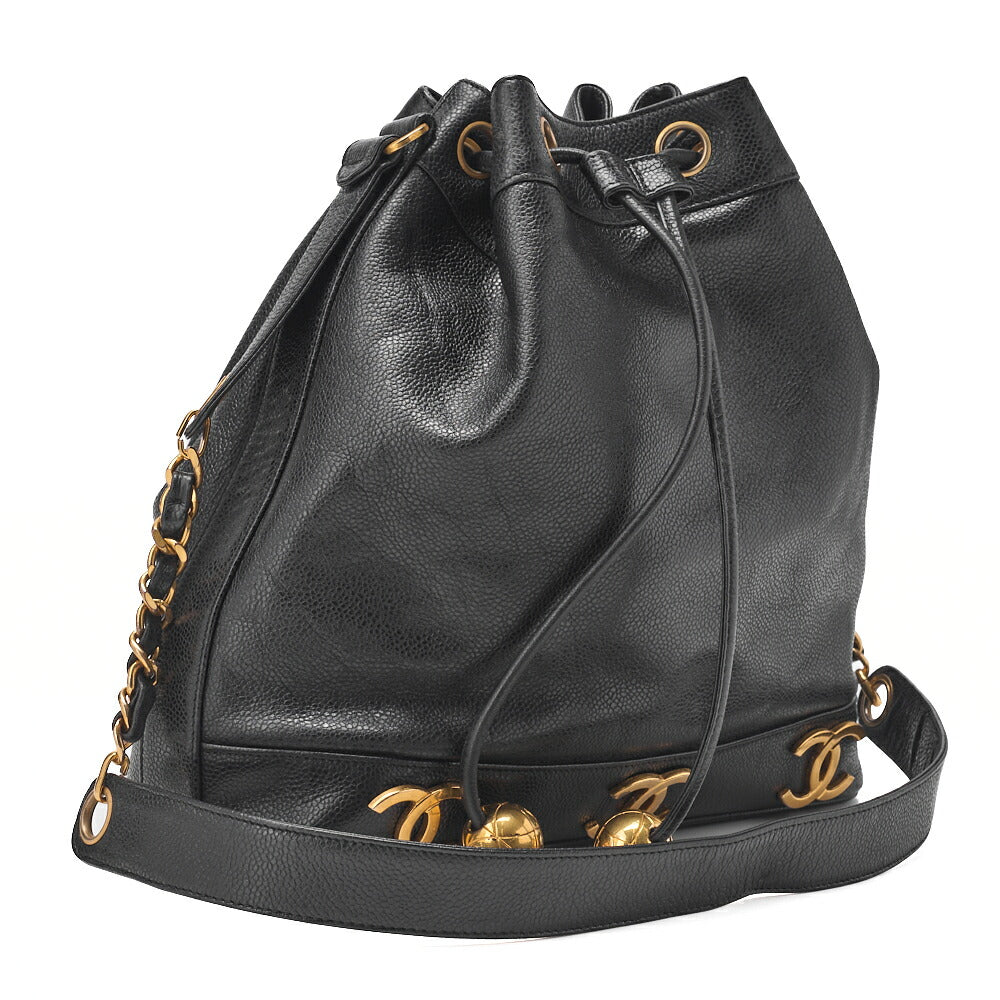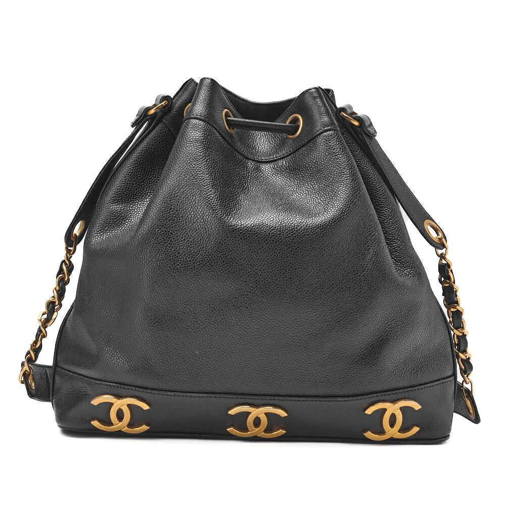 Pre-Owned Chain Shoulder Bag Caviar Skin Triple Coco Drawstring Purse Ball Charm Black Gold-Tone Hardware, Pre-Owned