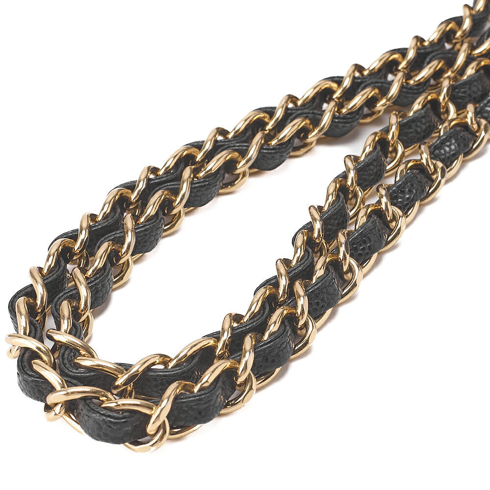 Pre-Owned Chain Shoulder Bag Deca Matelassé Double Flap 30cm Caviar Skin Black Gold-Tone Hardware, Pre-Owned