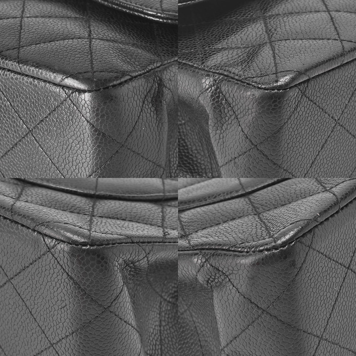 Pre-Owned Chain Shoulder Bag Double Flap Deca Matlasse 30cm Caviar Skin Black (Silver Fittings) Women's Bag Women's