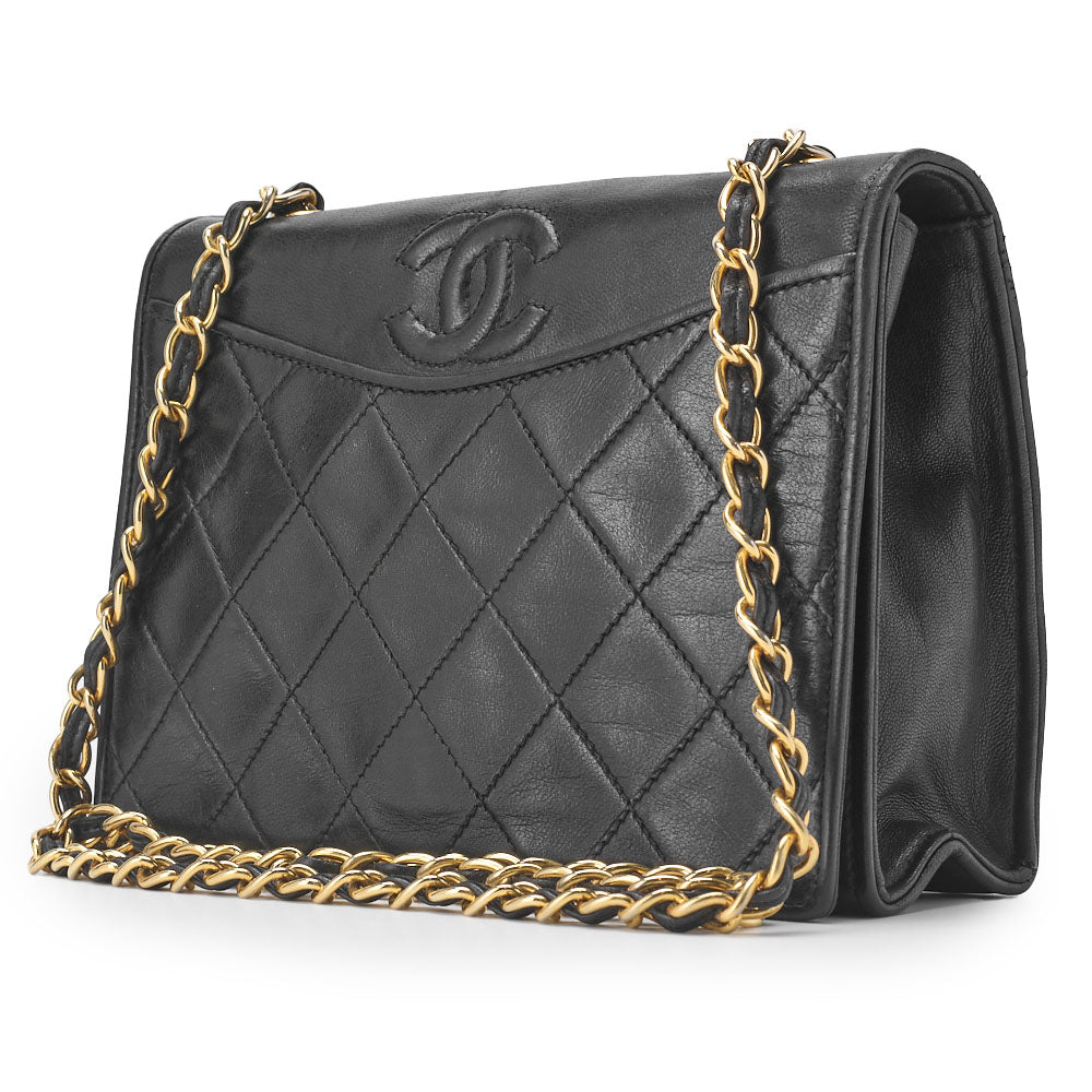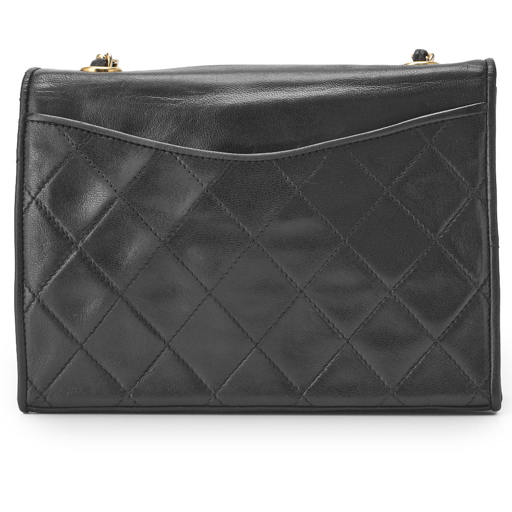 Pre-Owned Chain Shoulder Bag, Coco Mark, Full Flap Push Lock, Lambskin, Black, Gold-Tone Hardware, Pre-Owned