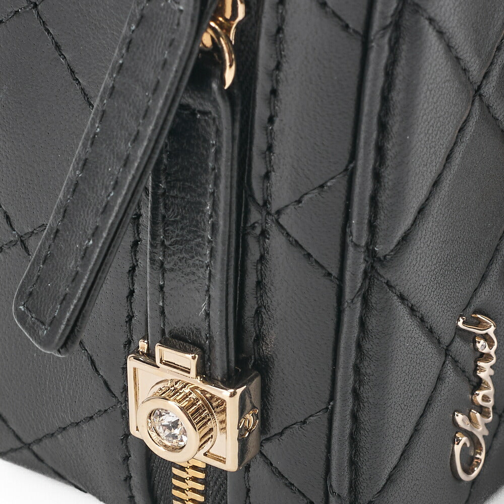 Pre-Owned Chain Shoulder Bag Matelasse Camera Bag Lambskin Black Gold-Tone Hardware Pre-Owned