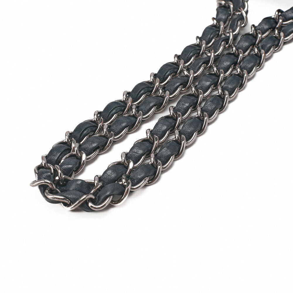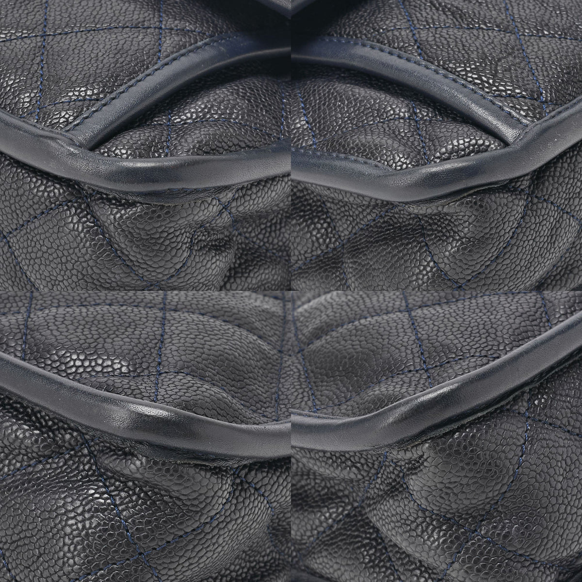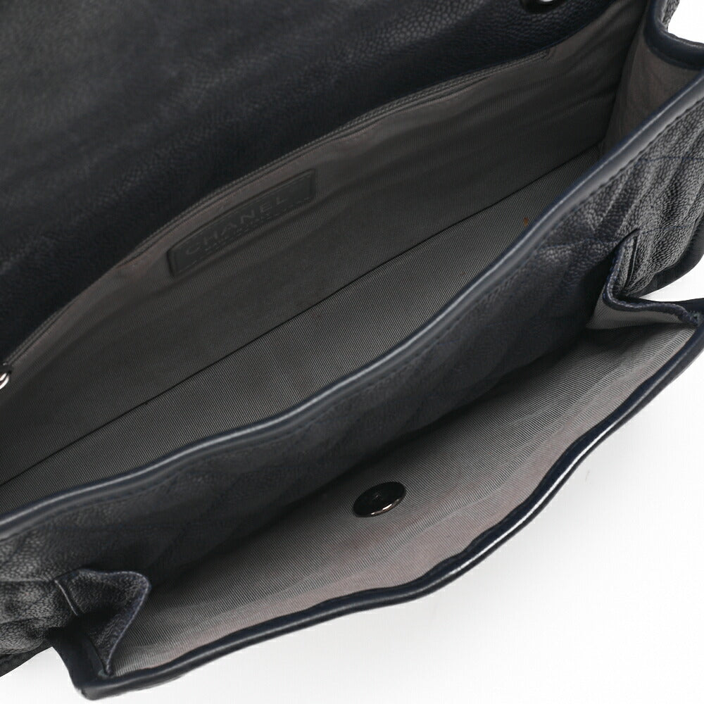 Pre-Owned Chain Shoulder Bag Matelassé Single Flap Turnlock Caviar Skin Navy Silver-Tone Hardware, Pre-Owned