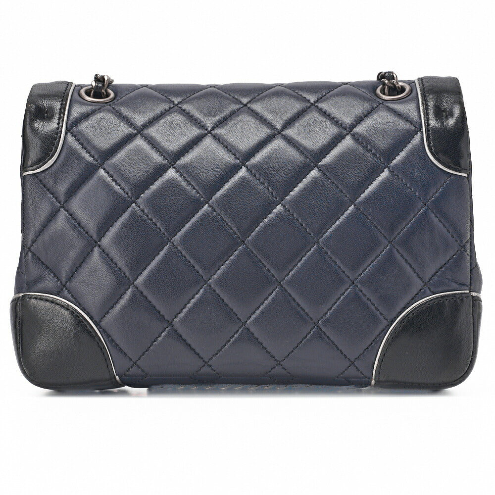 - Premium material: Mini Matelassé lambskin in bi-color Navy and Black, classic CHANEL texture.