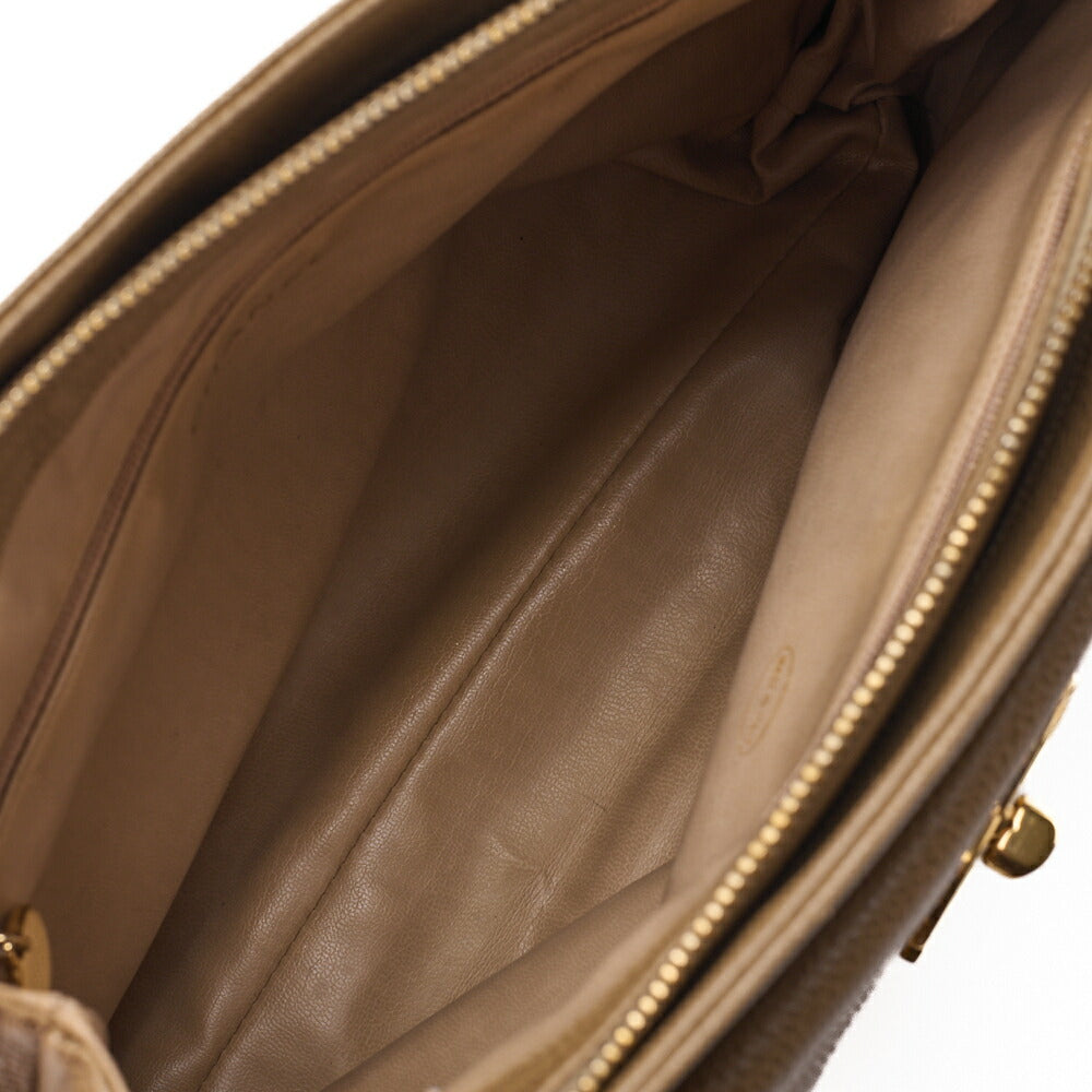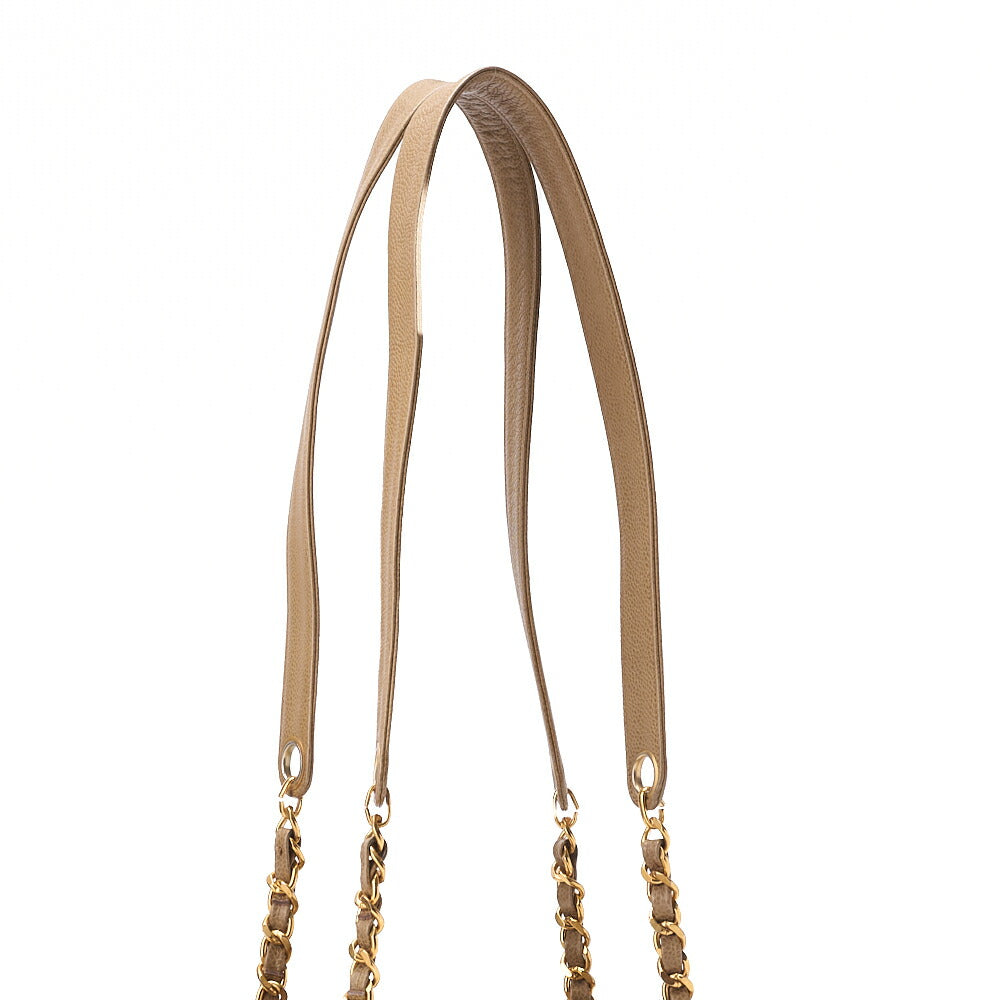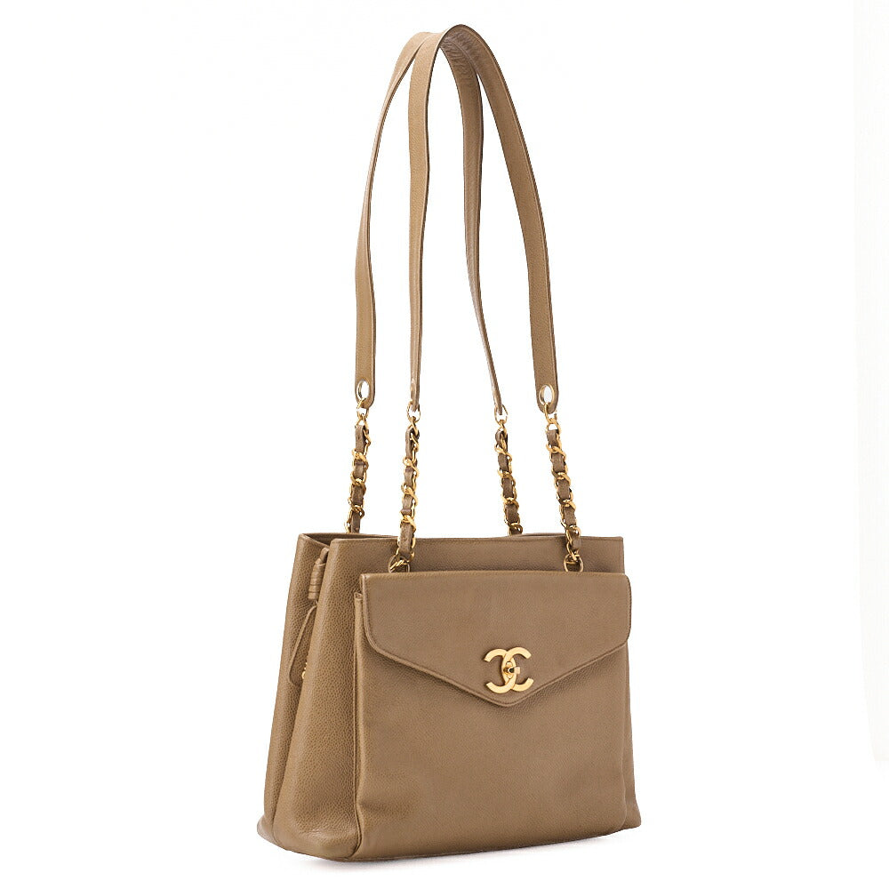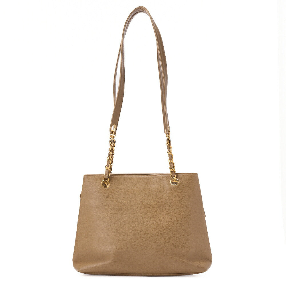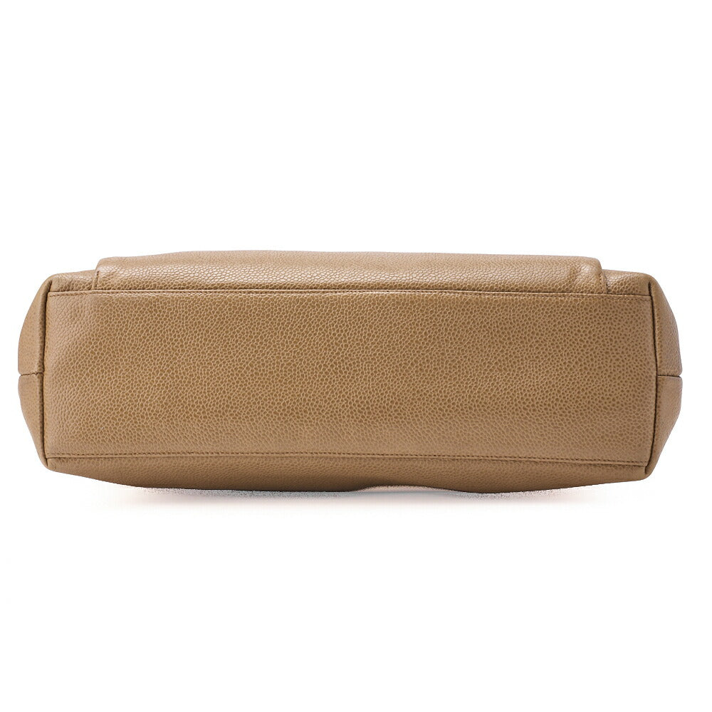 Pre-Owned Chain Shoulder Bag Tote Bag Outside Flap Caviar Skin Beige Gold-Tone Hardware, Pre-Owned