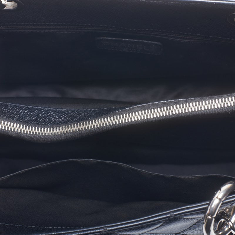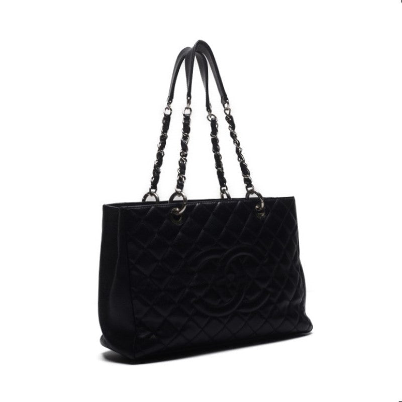 Elevate your style with the CHANEL GST Chain Tote in Caviskin Black, an iconic accessory that seamlessly blends luxury and functionality. This exquisite shoulder bag, featuring elegant silver fittings, embodies the timeless sophistication synonymous with the CHANEL brand.
